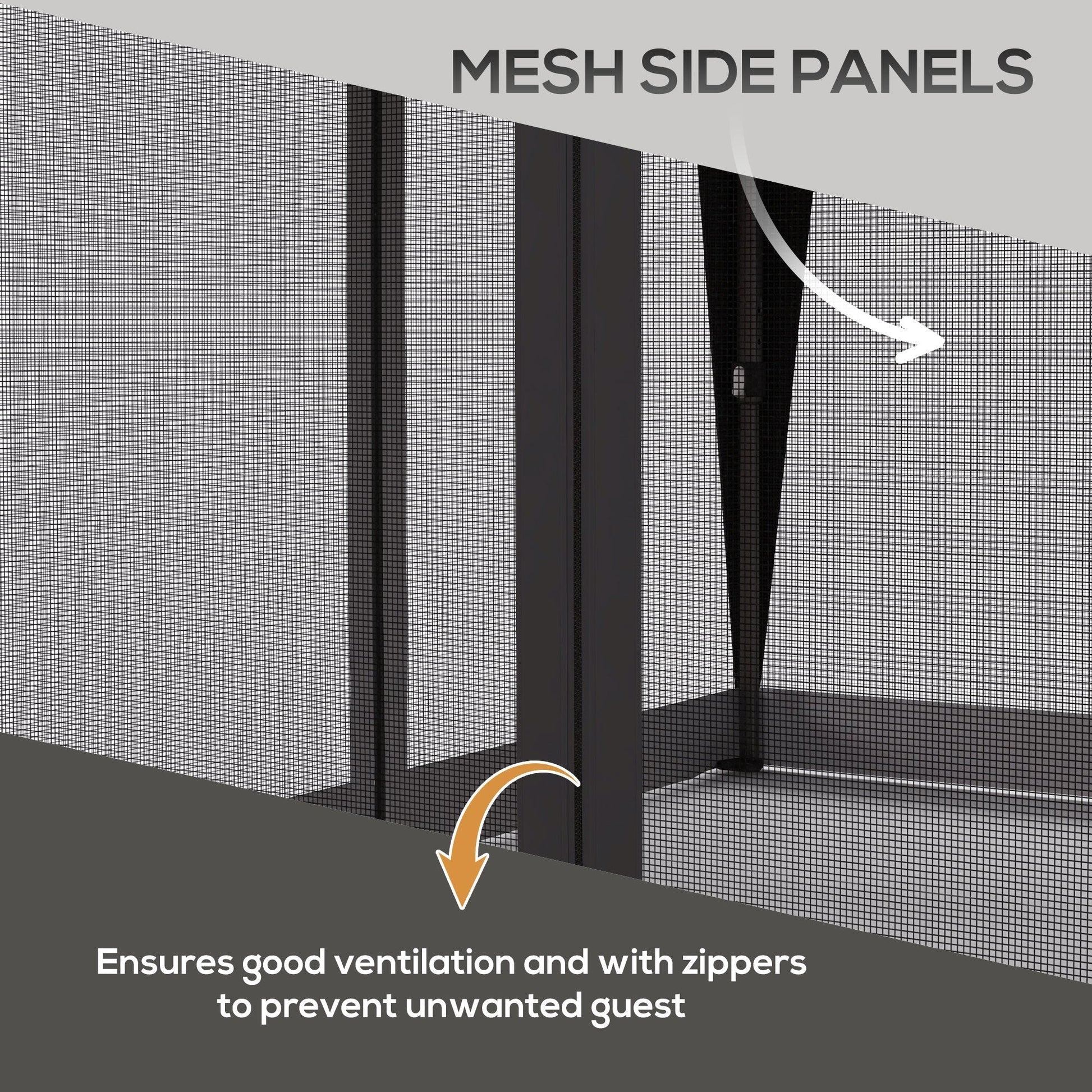 A garden tent for your outdoor gatherings, assembled oh so quickly - bring this Outsunny 3 x 3(m) pop-up gazebo to your outdoors this season and beyond. The freely adjustable steel frame means a strong core, which can be set to a height most suitable for you. Stakes, ropes and sandbags stabilise your garden shelter on soft ground. It provides shade for 5-8 people.
