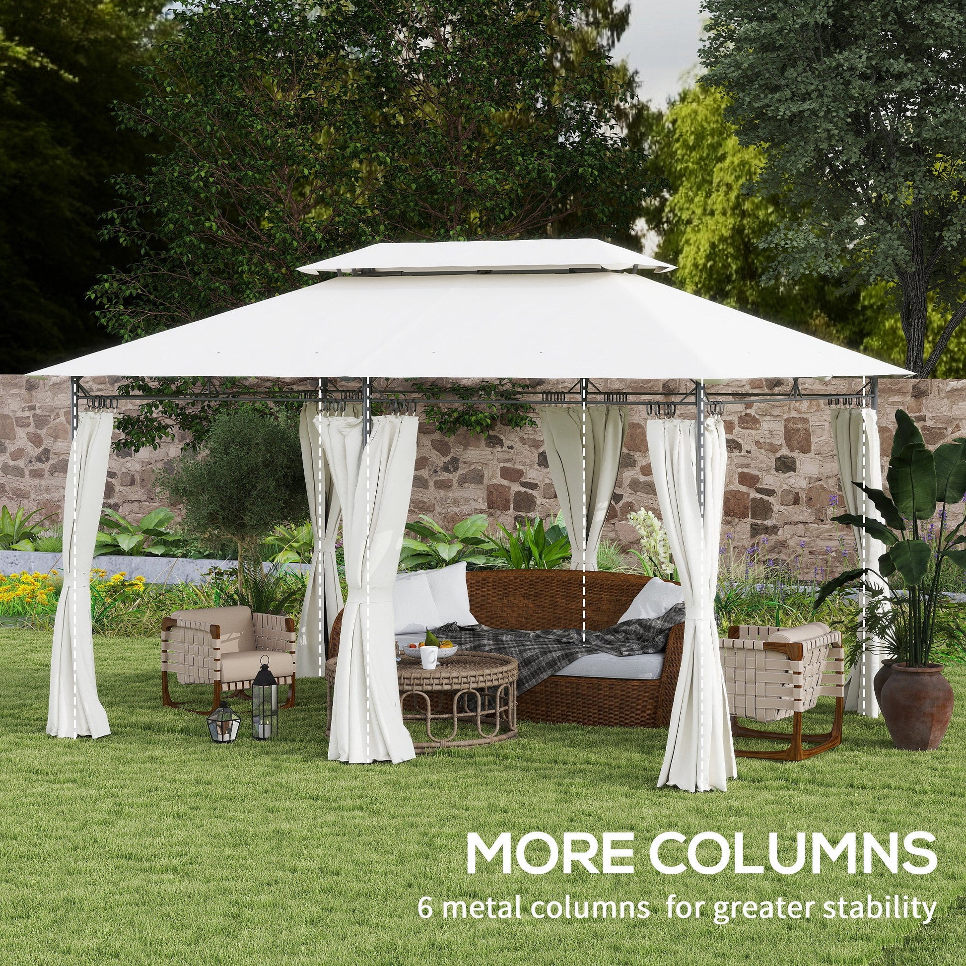 Outsunny 3 x 4m Metal Frame, Two-Tier Roof Gazebo - Cream White