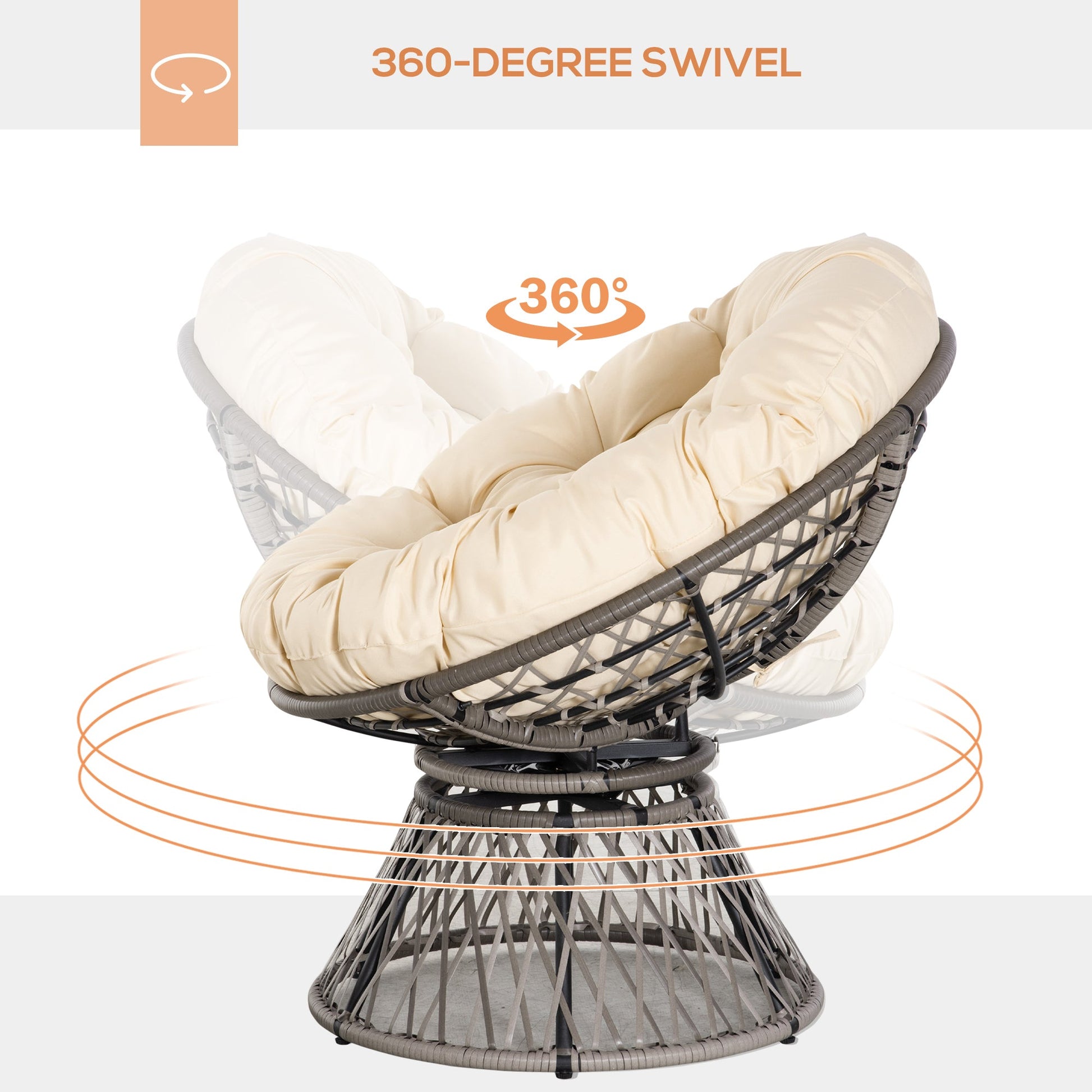 Outsunny 360 Swivel Rattan Moon Bowl Chair Round Lounge Garden Wicker Basket Seat with Padded Cushion Oversized for Outdoor Indoor, Beige