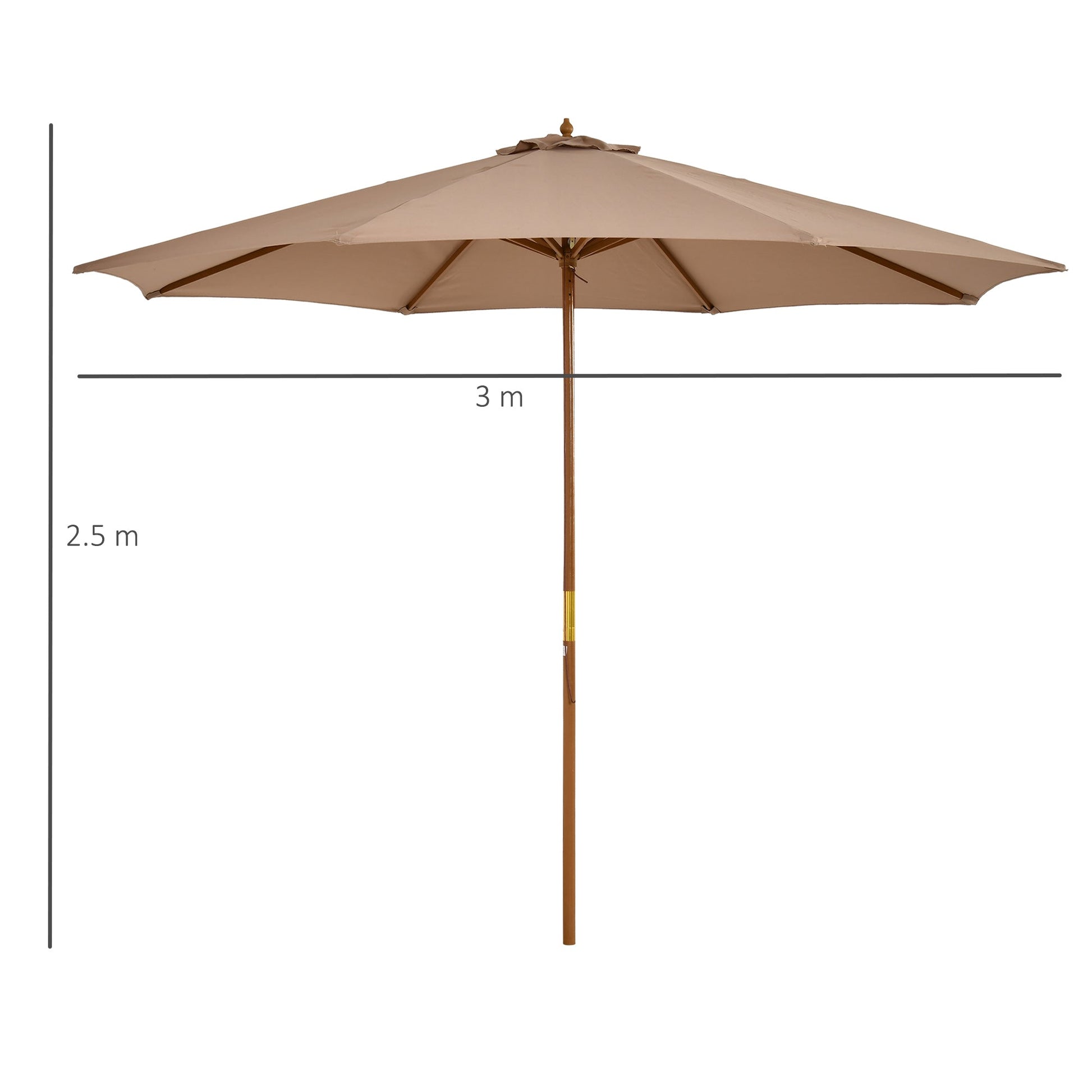 Outsunny 3(m) Garden Umbrella Wooden Parasol 8 Ribs Bamboo Sun Shade Patio Outdoor Umbrella Canopy Khaki