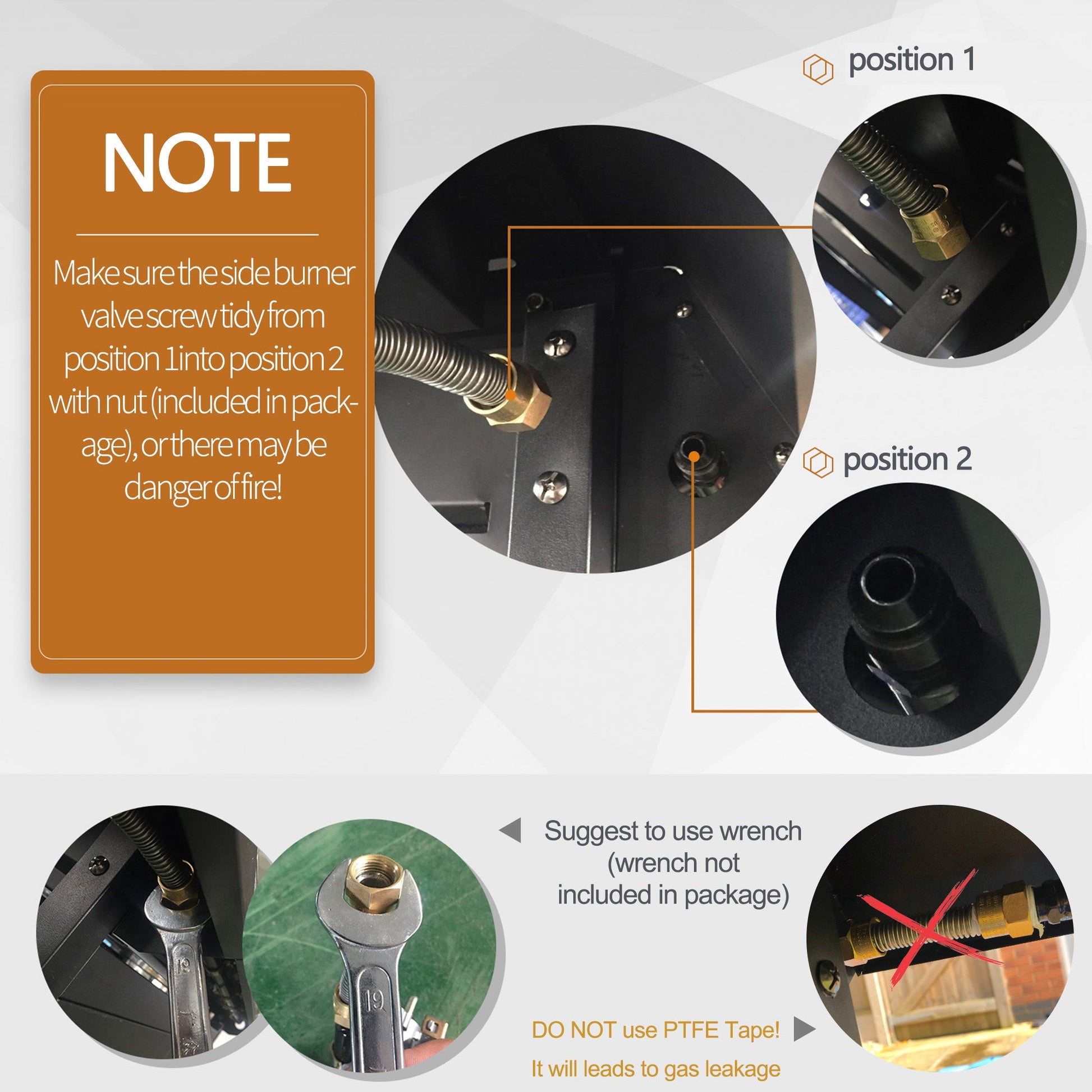 - Side Burner Output: 3.2 KW (11000BTU/HR)