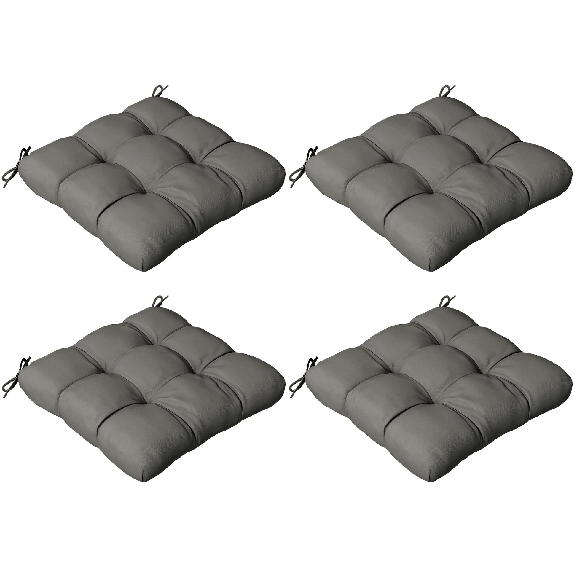 Outsunny 4-Piece Seat Cushion Pillows Replacement, Patio Chair Cushions Set with Ties for Indoor Outdoor, Charcoal Grey