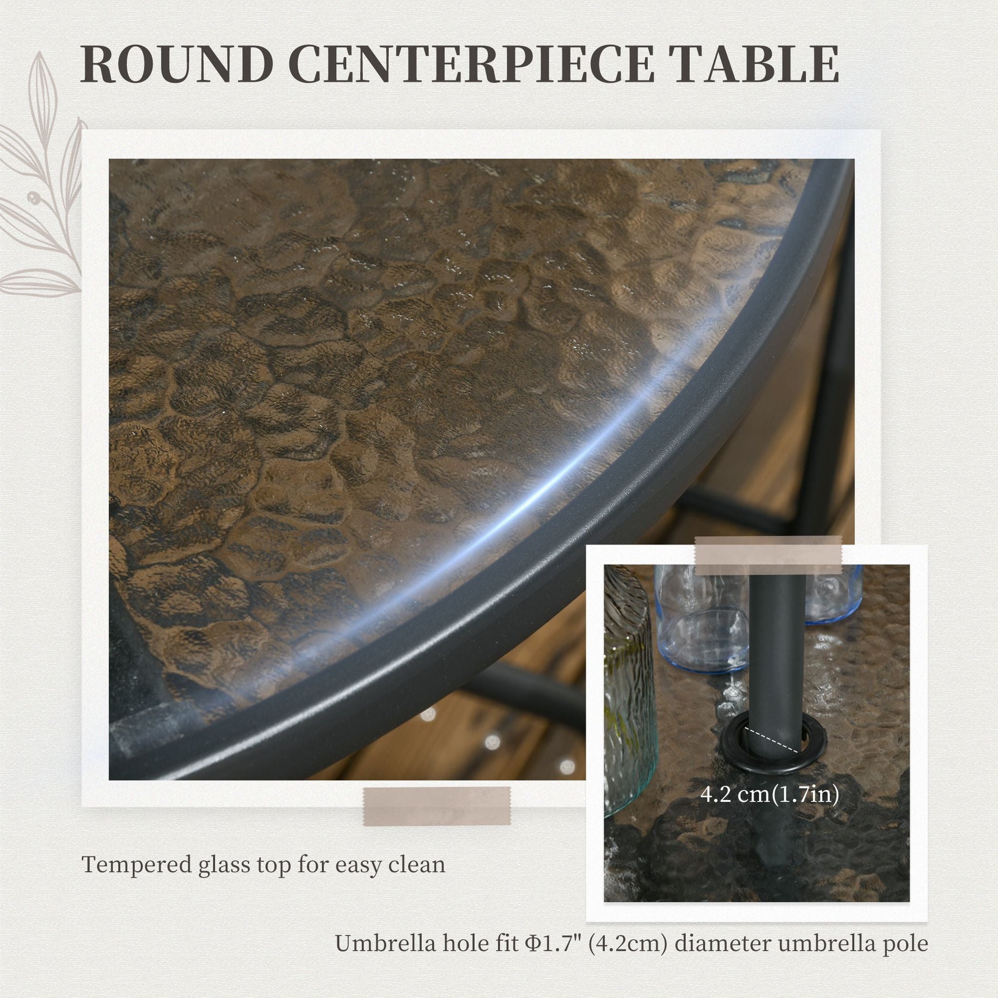 Outsunny 4 Seater Rattan Dining Set, Rattan Garden Furniture Set with Parasol Hole, Outdoor Dining Table and Chairs with 4 Armchairs, Round Glass Top Table for Patio, Balcony, Mixed Grey