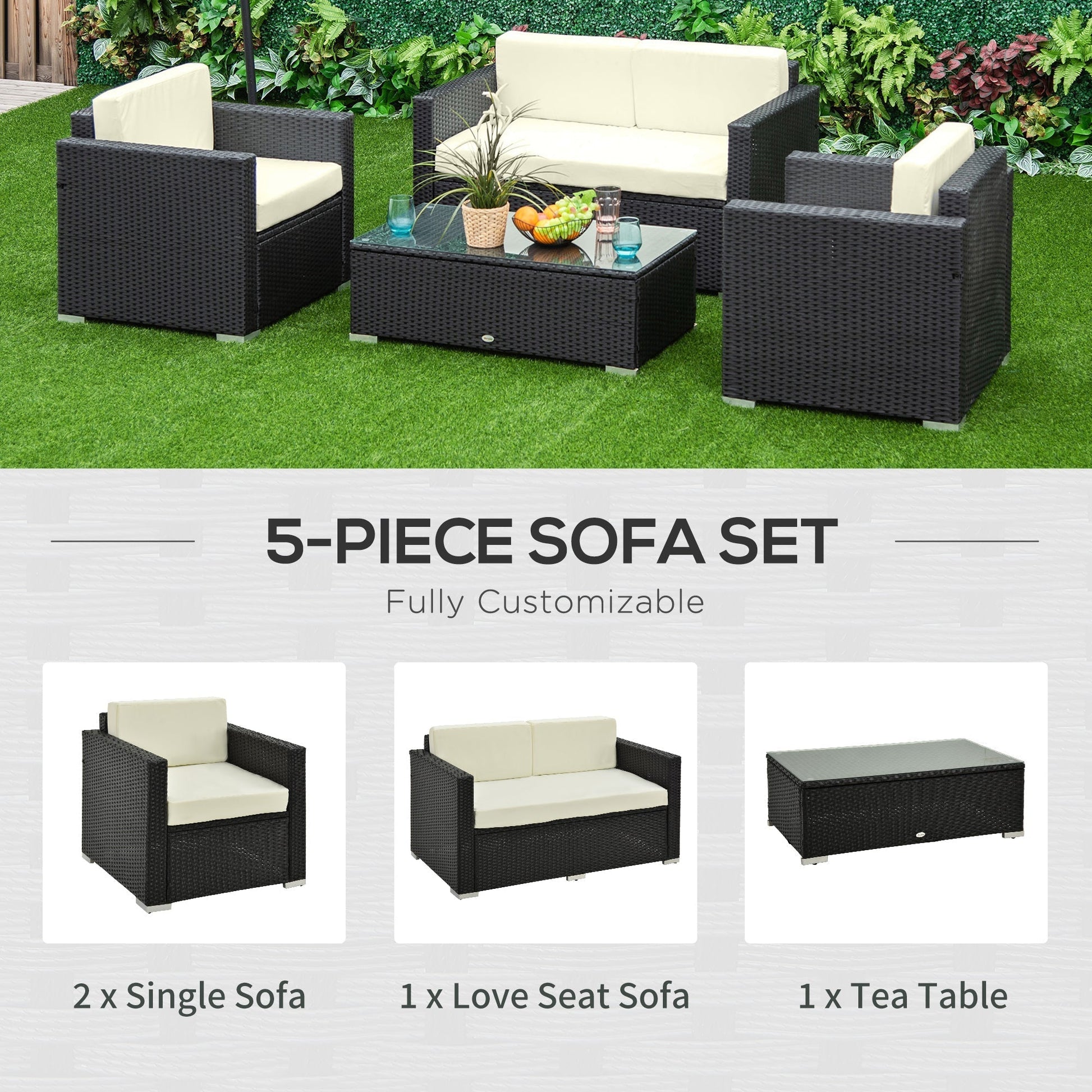 Outsunny 4-Seater Rattan Sofa Set Garden Rattan Furniture Wicker Steel Chair Seat Furniture Patio Rattan Garden Sofa Black