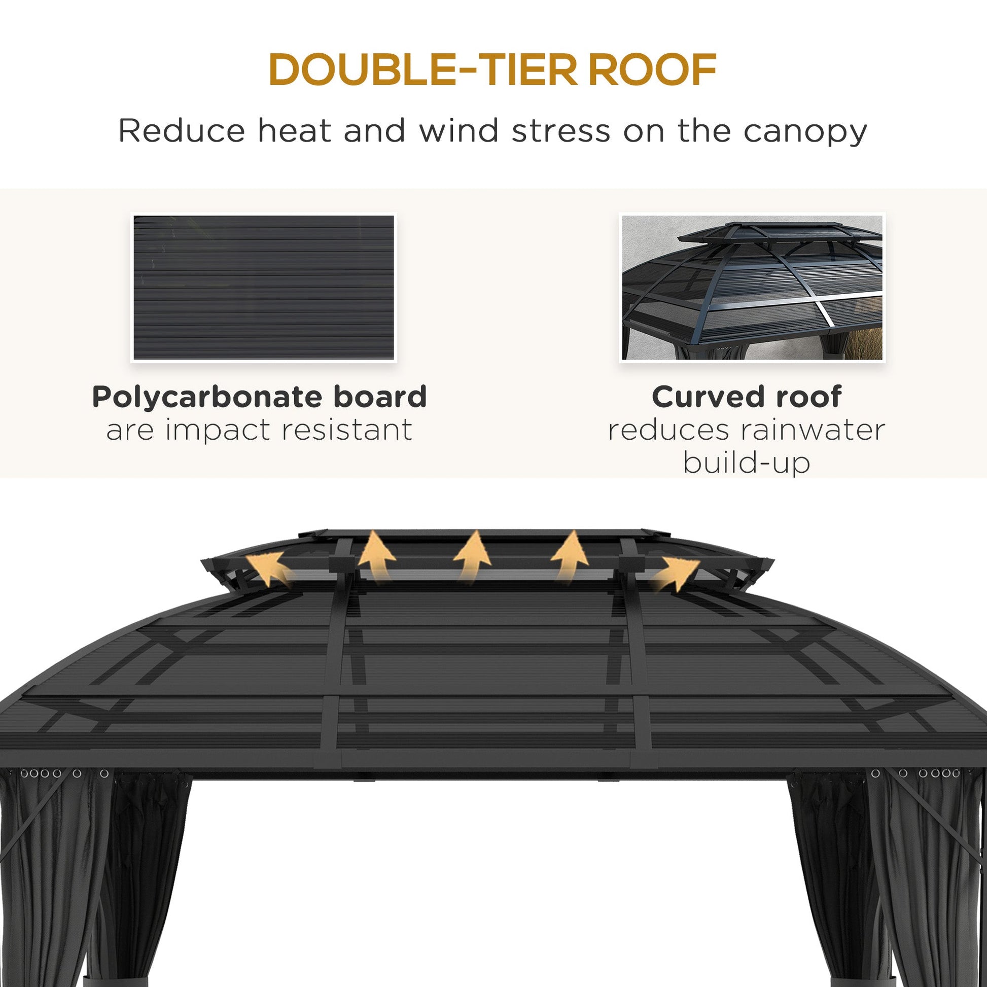 Outsunny 4 x 3m Aluminium Frame Hard Gazebo, with Accessories - Black