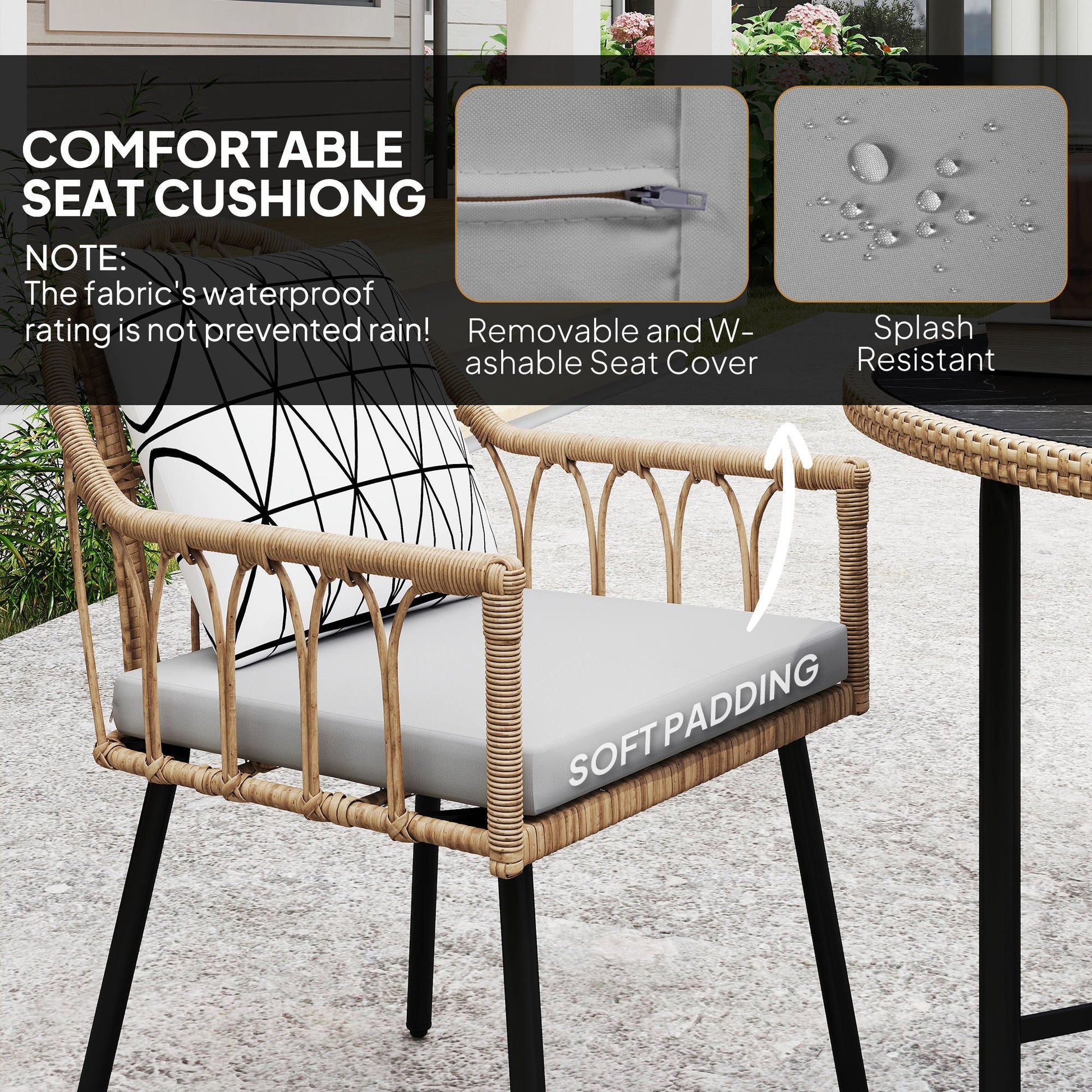 Outsunny 5 Piece Patio Rattan Dining Set, Wicker Garden Table and Chairs w/ Removable Seat & Back Cushions, Round Tempered Glass Tabletop, Parasol Hole, Outdoor Furniture Conservatory Set, Light Brown