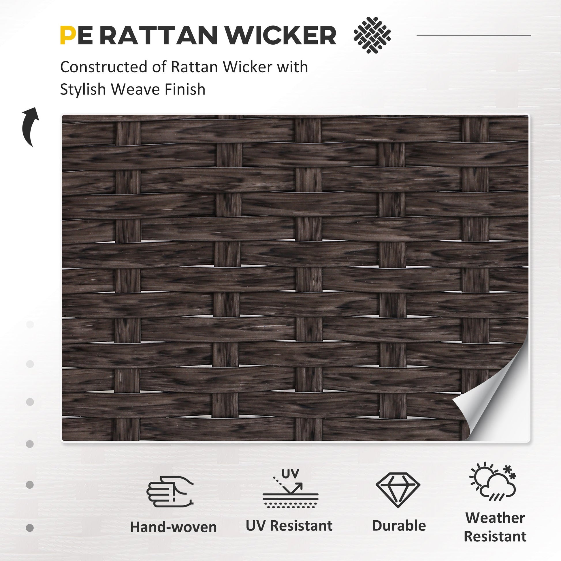 Sit back and relax in complete comfort with this rattan sofa set from Outsunny. Formed of five pieces, features two armchairs, two footstools and a matching coffee table. Made from hand woven PE rattan, with a steel frame underneath for extra support and stability. Thick padded cushions ensure you'll be relaxing comfortably for hours, You can put your feet on the footstool, or use it as an extra seat. This garden sofa set is a fantastic combination, comfortable and minimal hassle.
