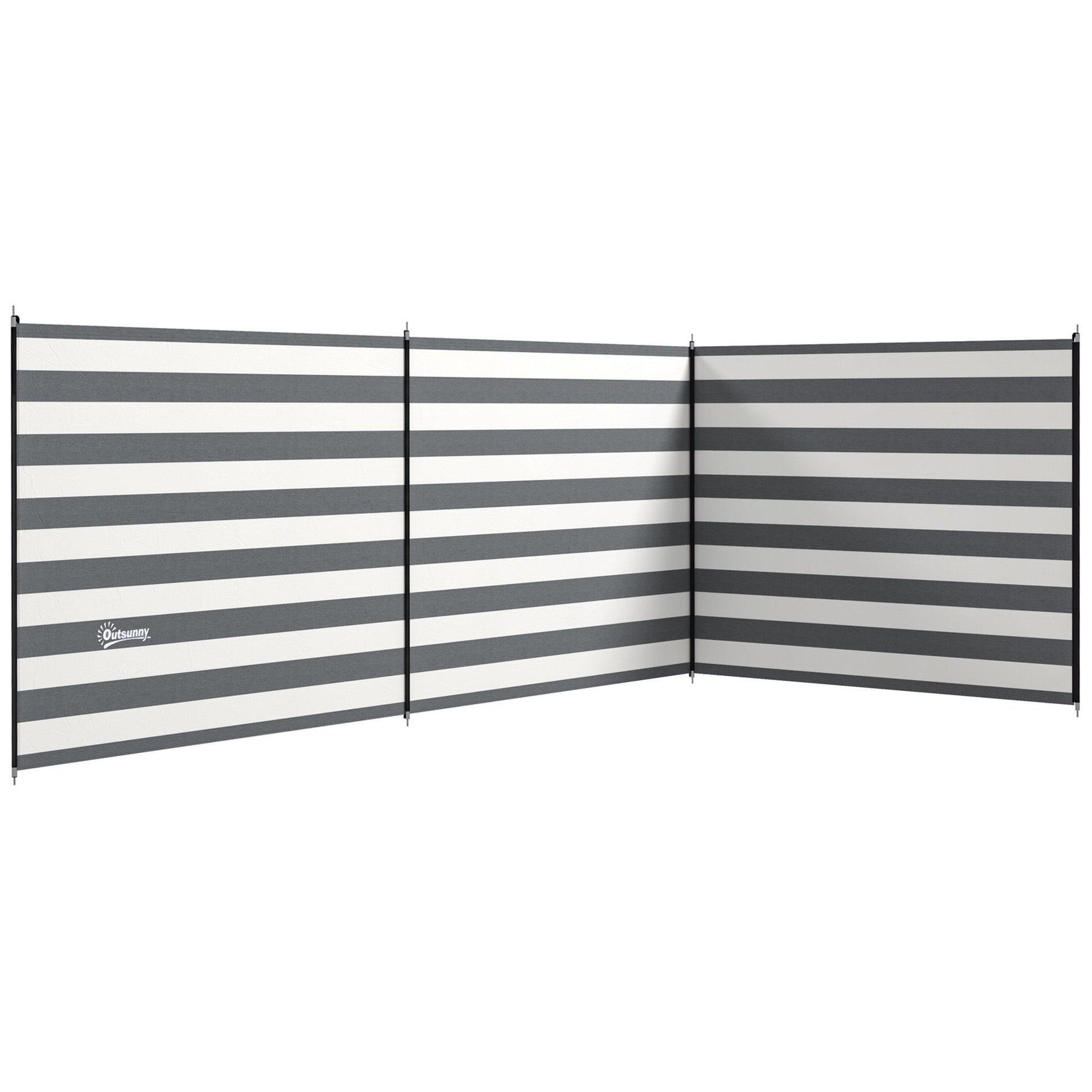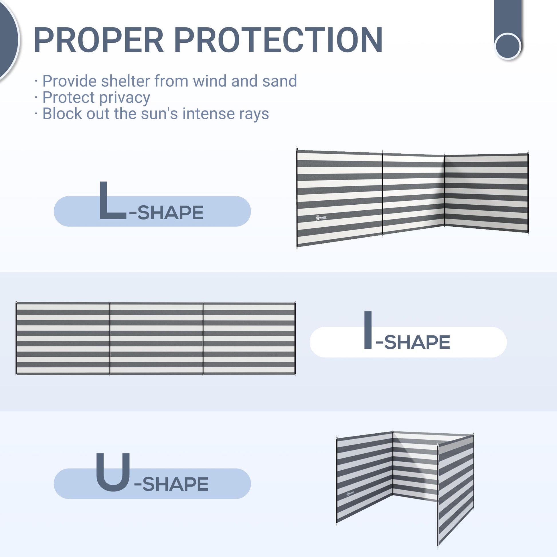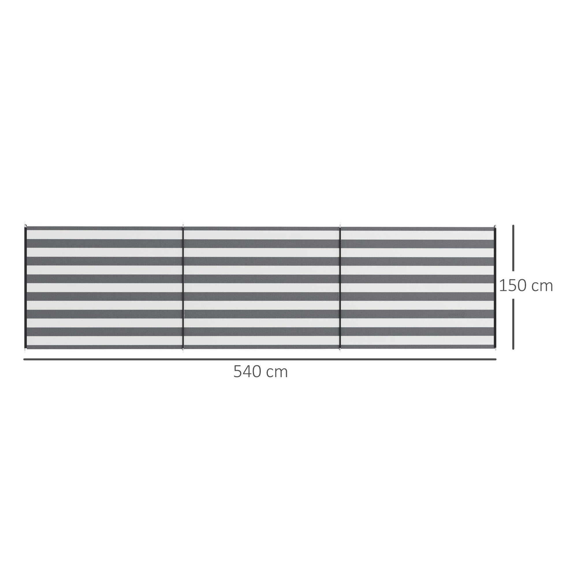 Outsunny 4 Pole Camping Windbreaks, Beach Wind Shield Shelter with Carry Bag and Steel Poles, Outdoor Caravan Privacy Shield, 540cm x 150cm, Grey and White