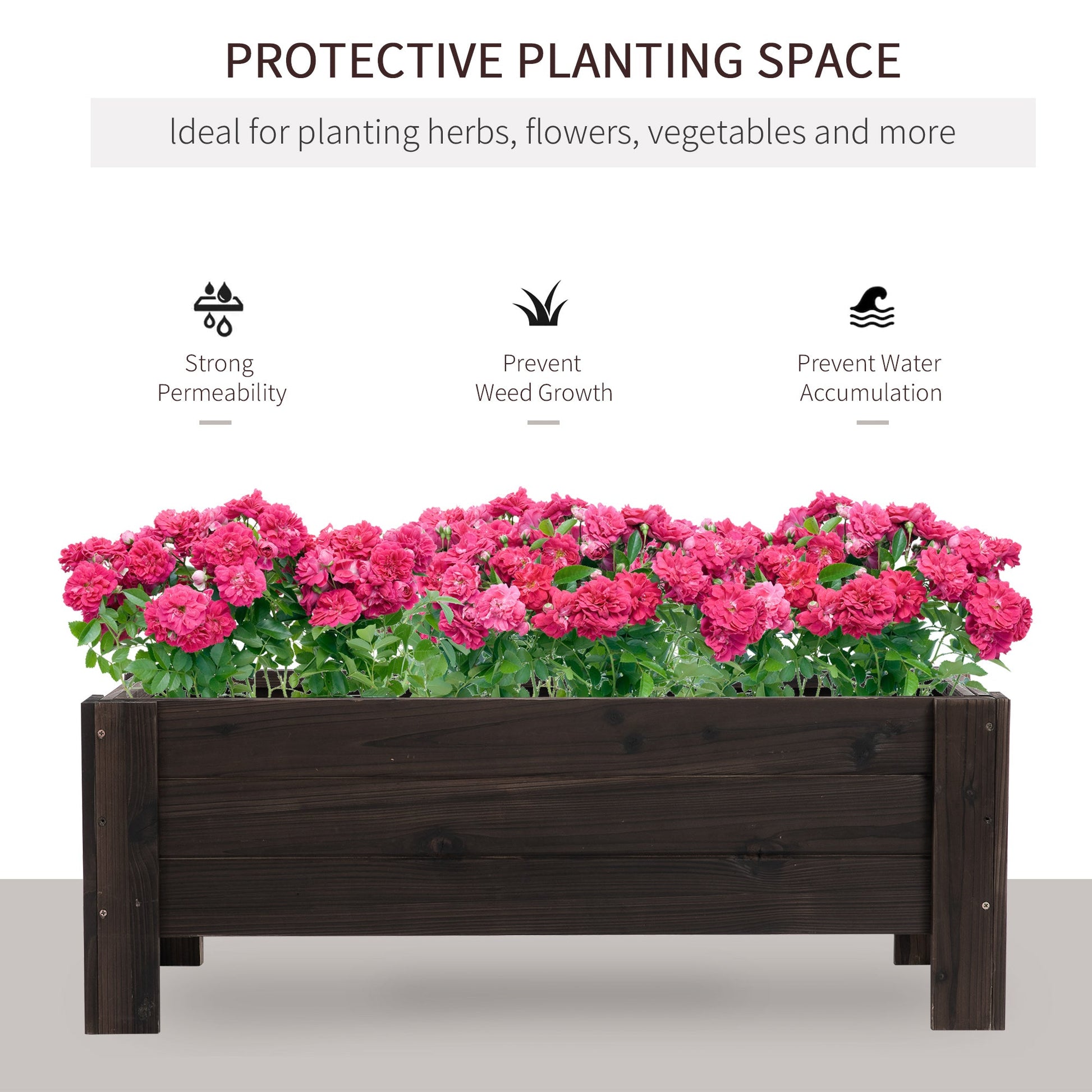 Outsunny 58L Garden Raised Bed Planter Grow Containers for Outdoor Patio Plant Flower Vegetable Pot Fir Wood, 100 x 36.5 x 36 cm, Carbonized Colour