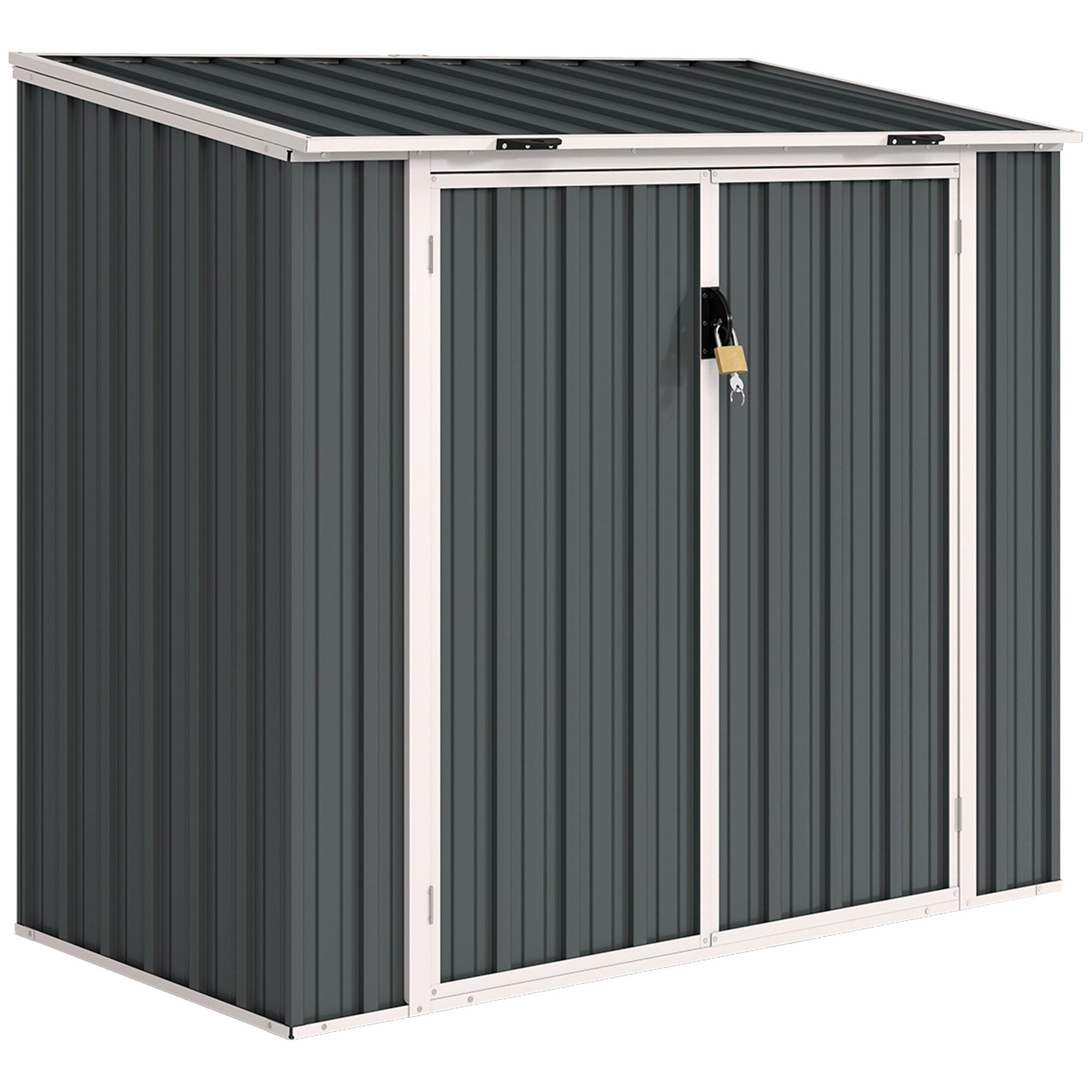 Outsunny 5ft x 3ft Garden 2-Bin Steel Storage Shed, Double Rubbish Storage Shed, Hide Dustbin w/ Locking Doors and Openable Lid