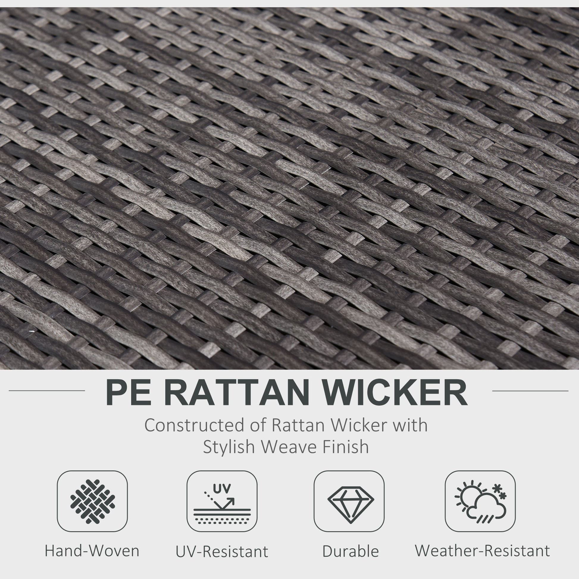 - Made from PE rattan with a strong steel frame underneath for long-lasting use