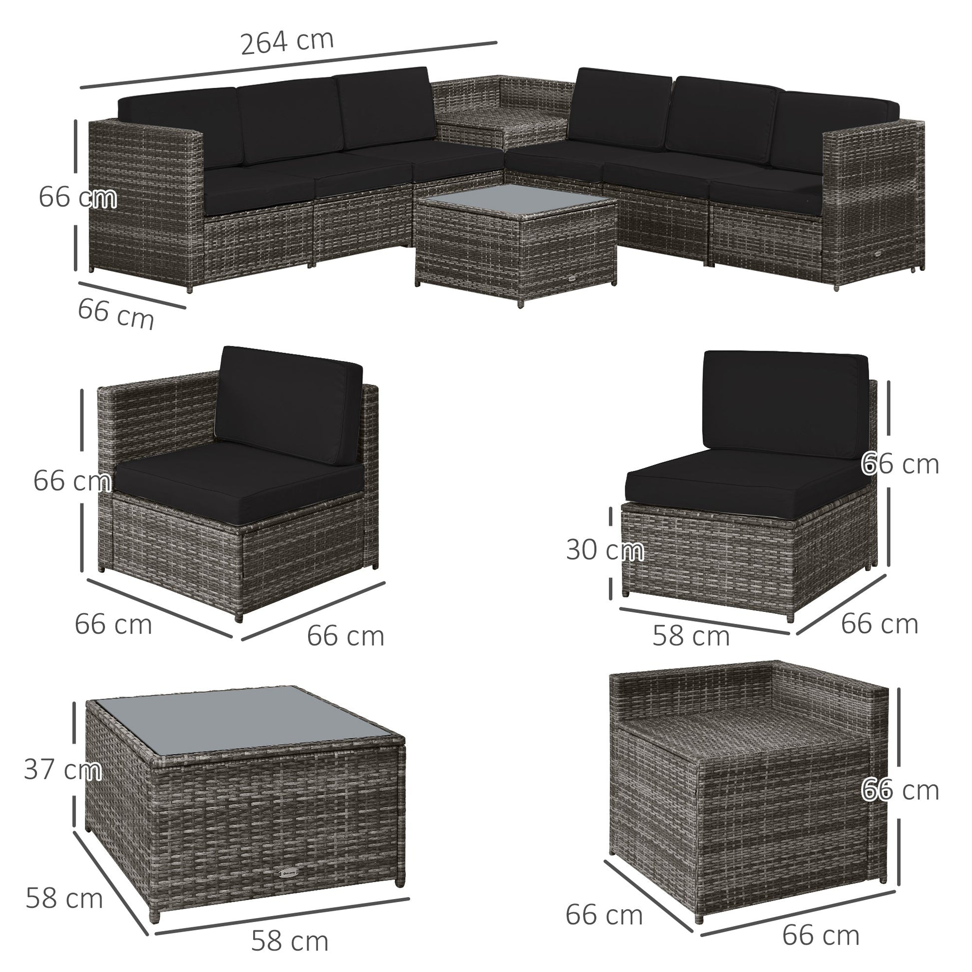 Make the most of the warm weather with this eight-piece outdoor rattan garden furniture set from Outsunny. Its open design is also great for combining two or more sets together in your café, restaurant or business to allow you to cater to larger seating numbers and expanding your outside business revenue. Finished with a hidden storage compartment in the corner table, you’ll never leave the area in a mess, making it ideal for those with busy lifestyles and little time to spare.\n