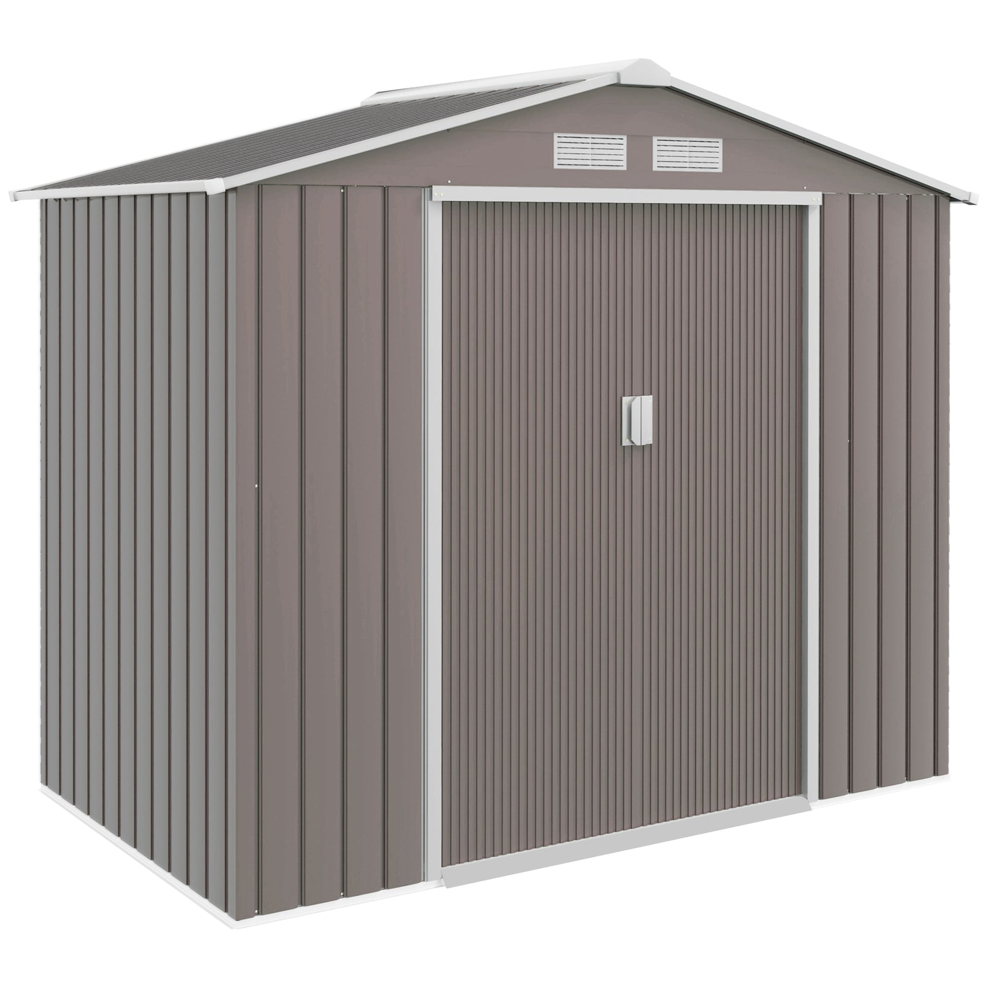 Outsunny 7ft x 4ft Lockable Garden Metal Storage Shed Storage Roofed Tool Metal Shed w/ Air Vents Steel Grey