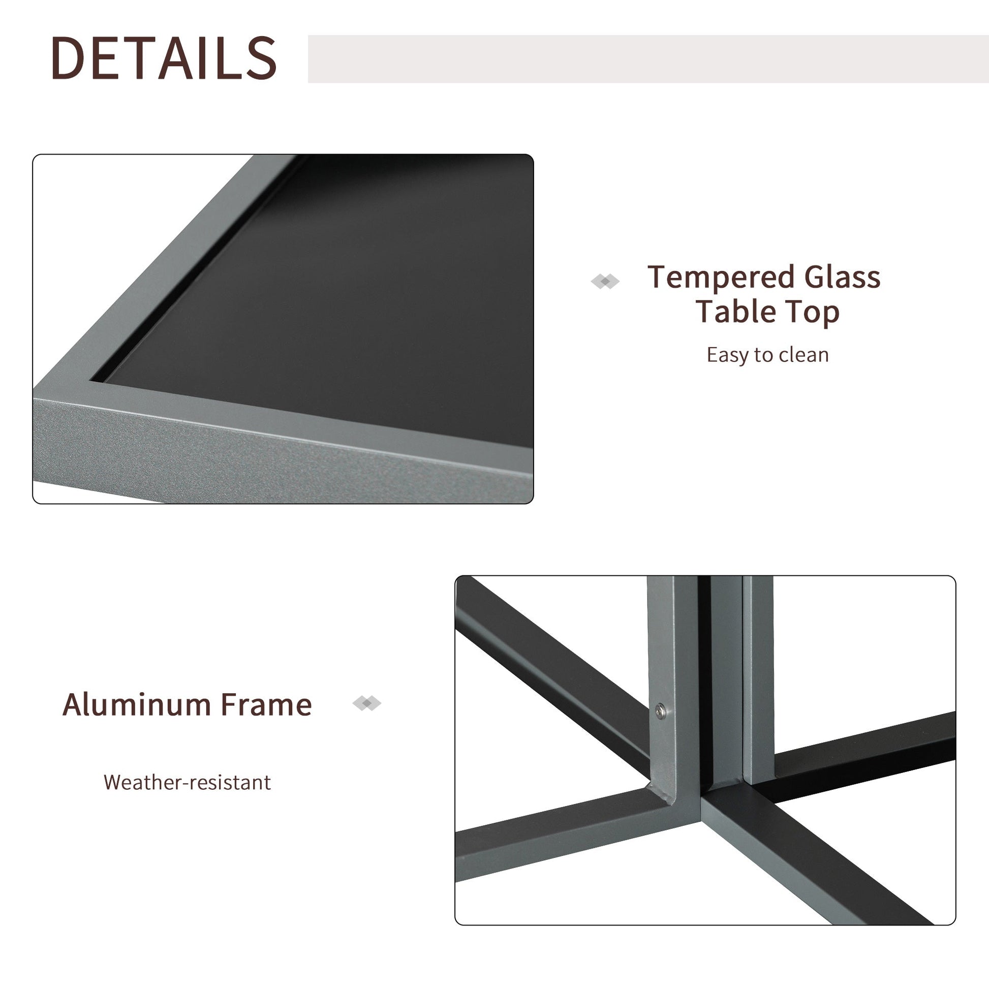 - Tempered glass table top for a solid and sleek surface