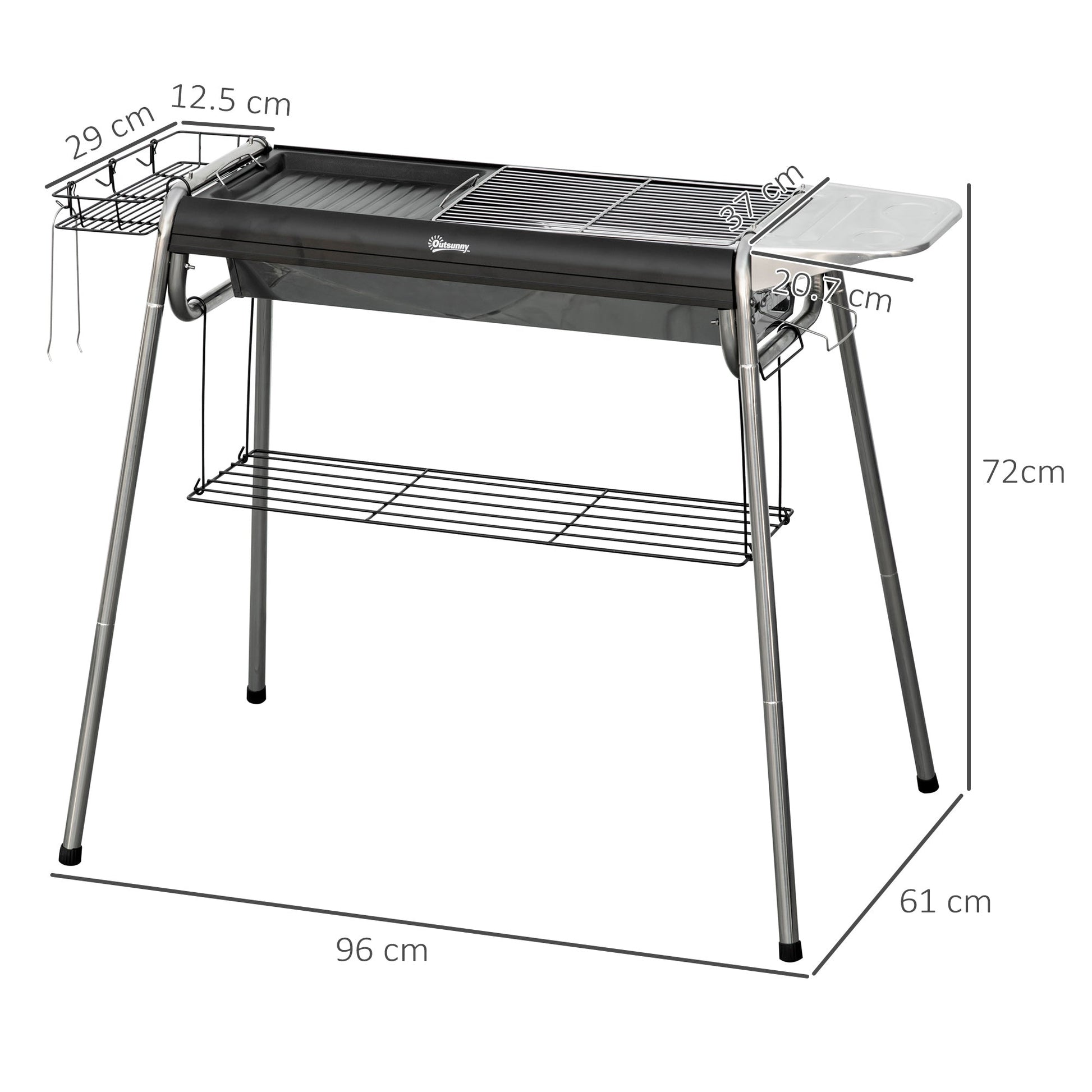 Get some friends together, and enjoy excellent food from your own personal BBQ. Take the Outsunny's barbecue grill to your garden, camping, tailgating, or anywhere you need it. Just assemble the legs and you'll get a complete cooking place. The large cooking area can support 8-15 servings. Start enjoying unforgettable meals with your family and friends in the joys of nature.
