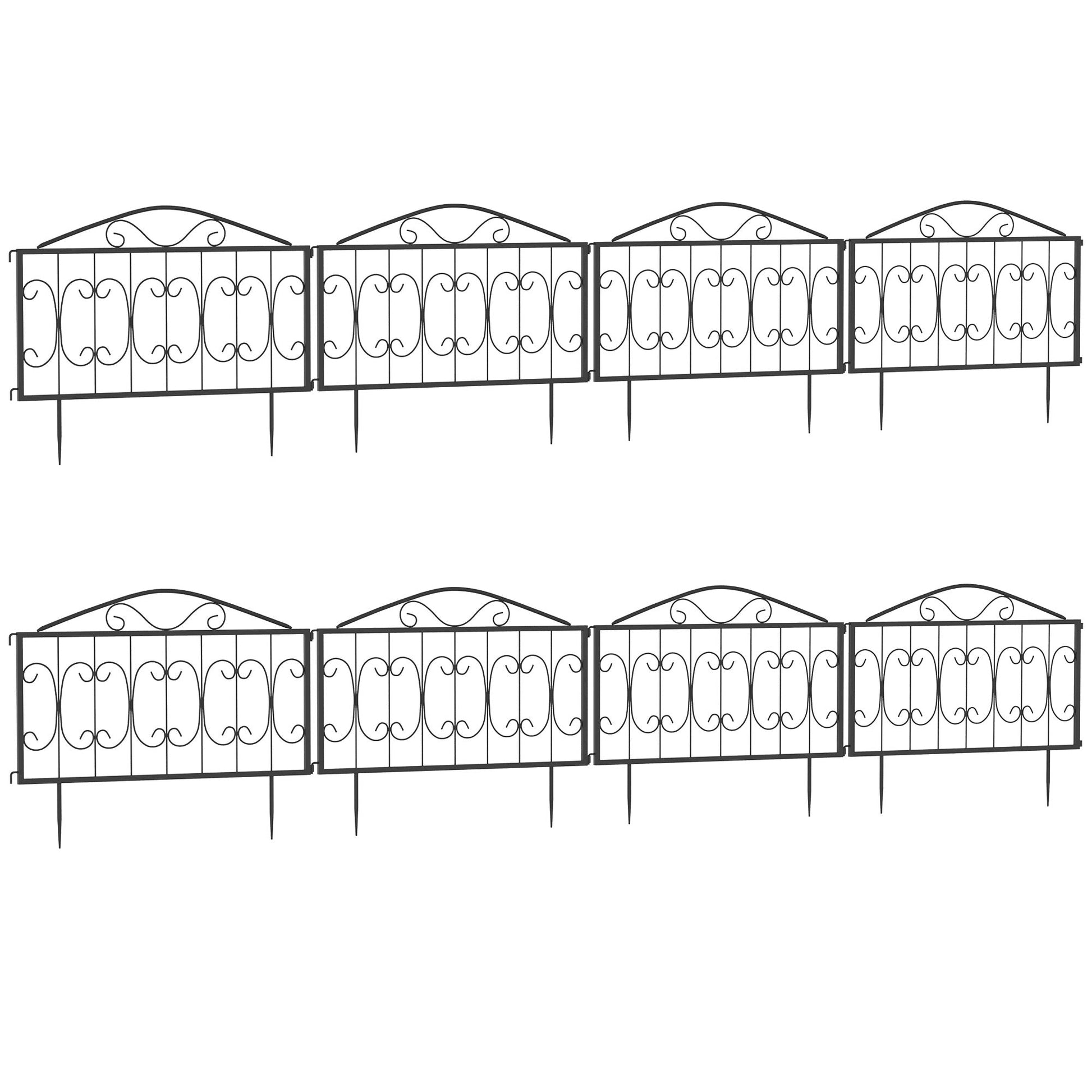 Outsunny Decorative Garden Fencing, 8PCs Outdoor Picket Fence Panels, Rustproof Metal Wire Landscape Flower Bed Border Edging Animal Barrier, Black