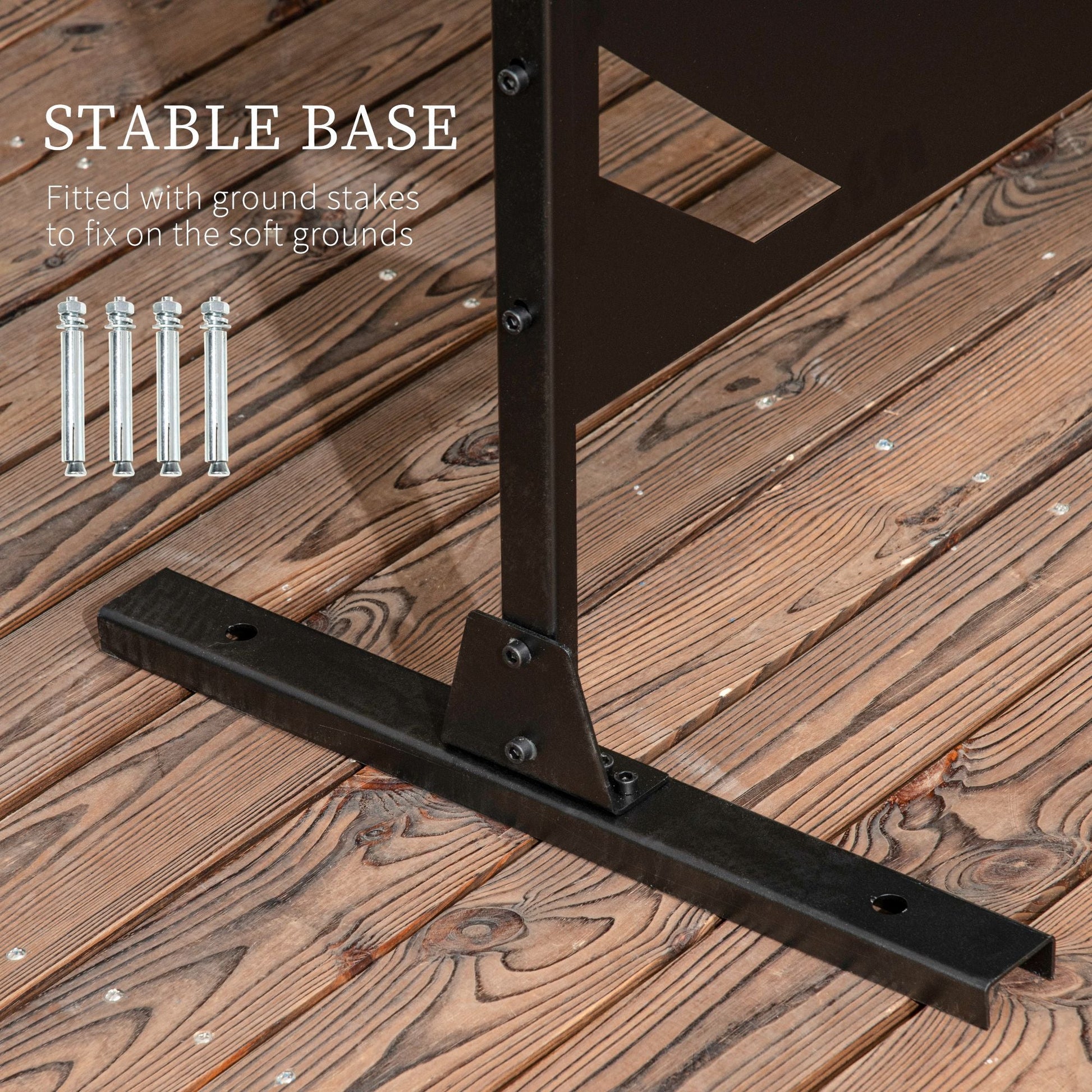 Outsunny Decorative Privacy Screen with Stand, 6.5FT Freestanding Metal Outdoor Divider, Decorative Privacy Panel with Expansion Screws for Garden Patio Pool Hot Tub, Banana Leaf Style, Black