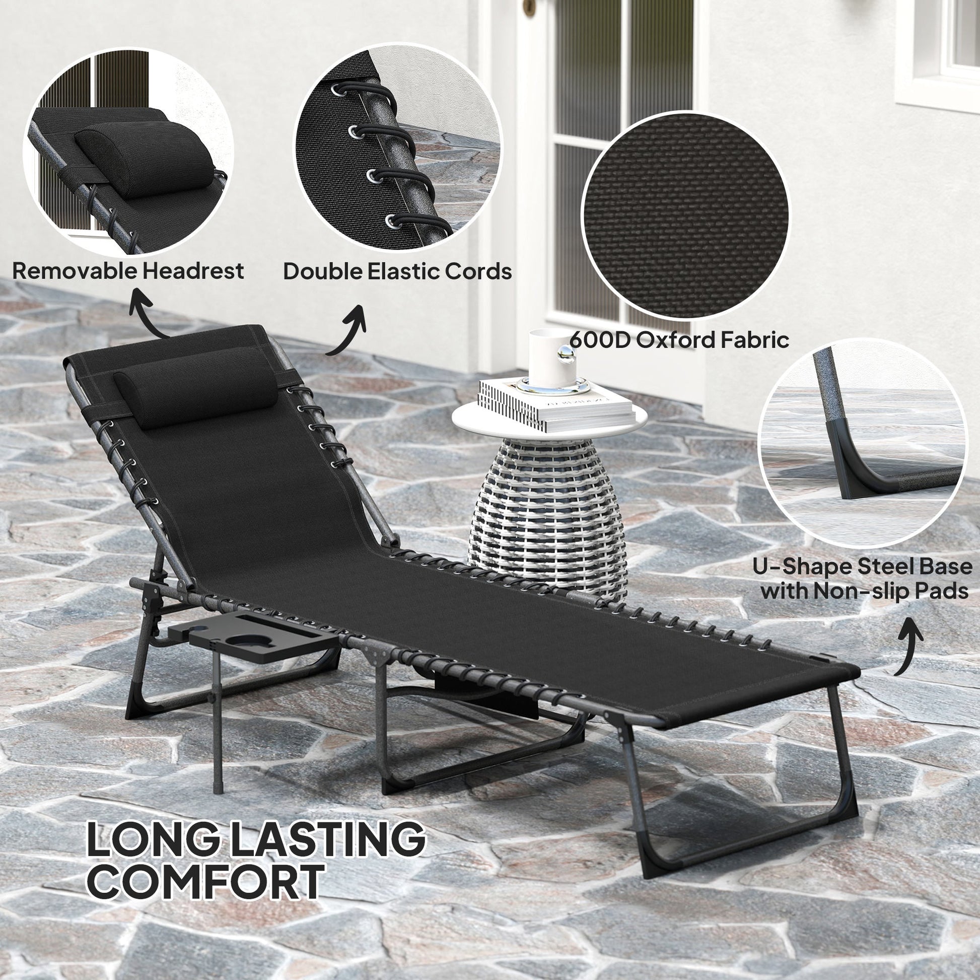 Outsunny Five-Position Reclining Sun Lounger - Black
