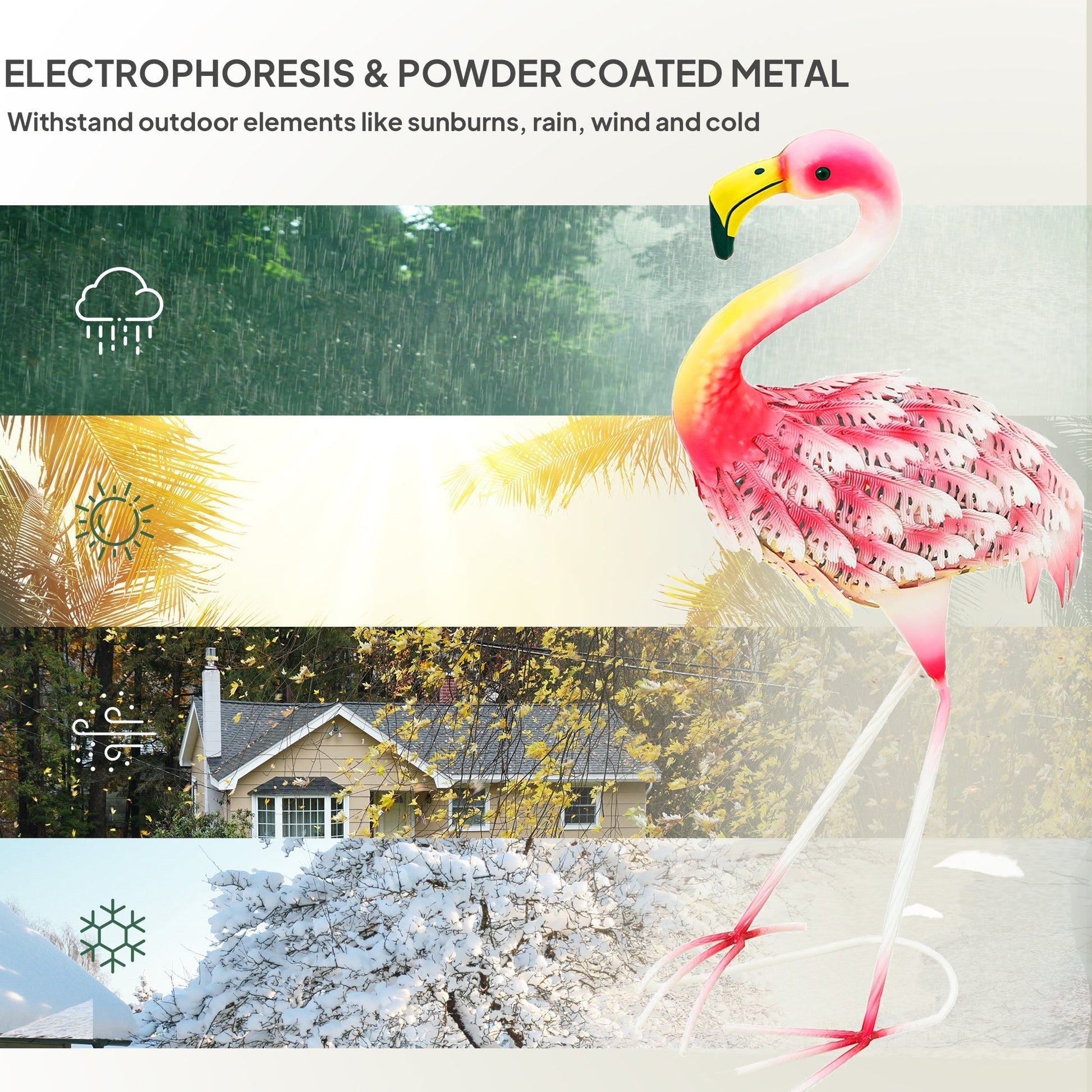 Outsunny Flamingo Garden Statue Ornament, Metal Bird Art Outdoor Statue, Standing Garden Sculpture Gift with Ground Stakes for Pond Landscape Decoration, Pink