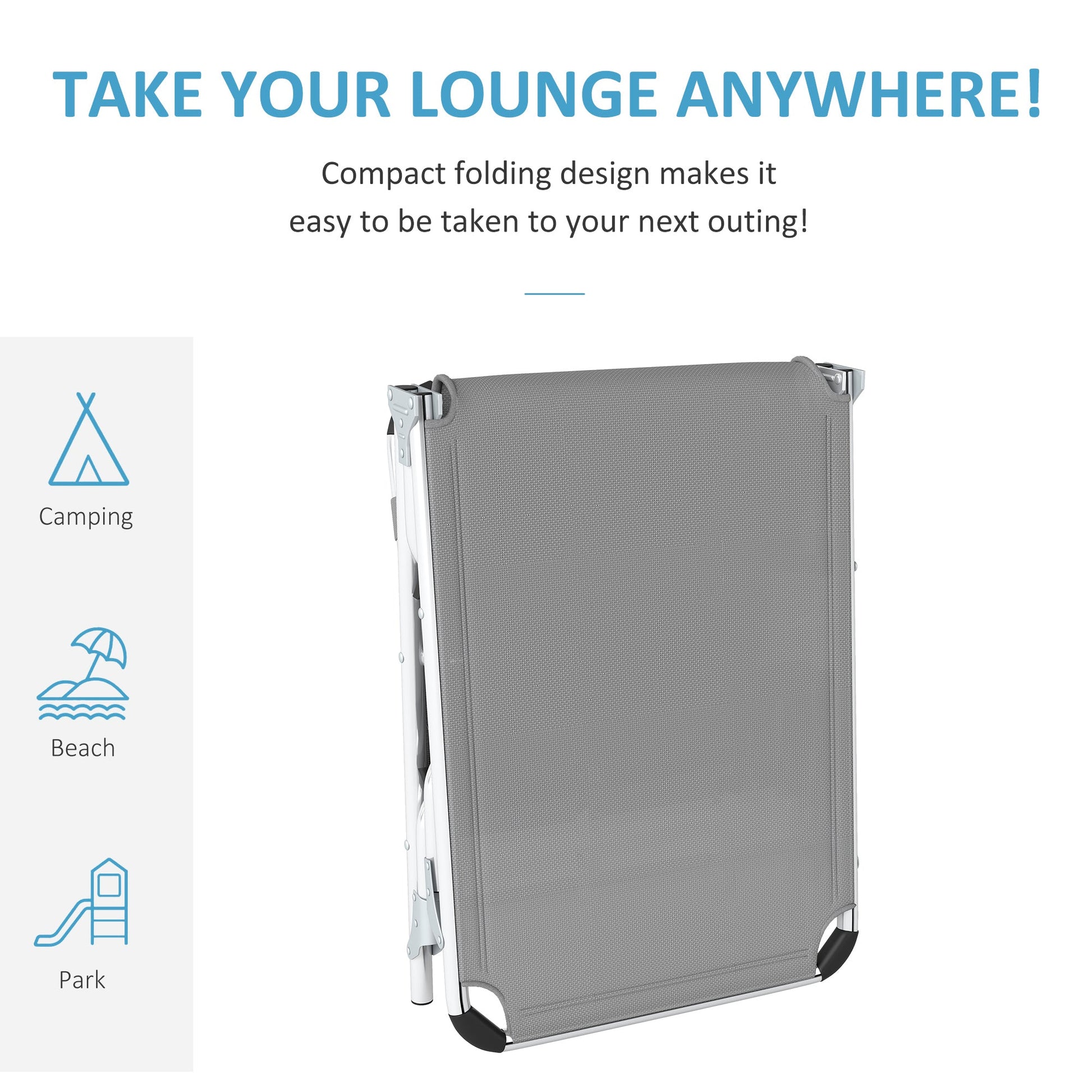 Outsunny Foldable Outdoor Sun Lounger Set of 2, Reclining Lounge Chair Camping Bed Cot with Pillow 4-Level Adjustable Back Aluminium Frame, Light Grey