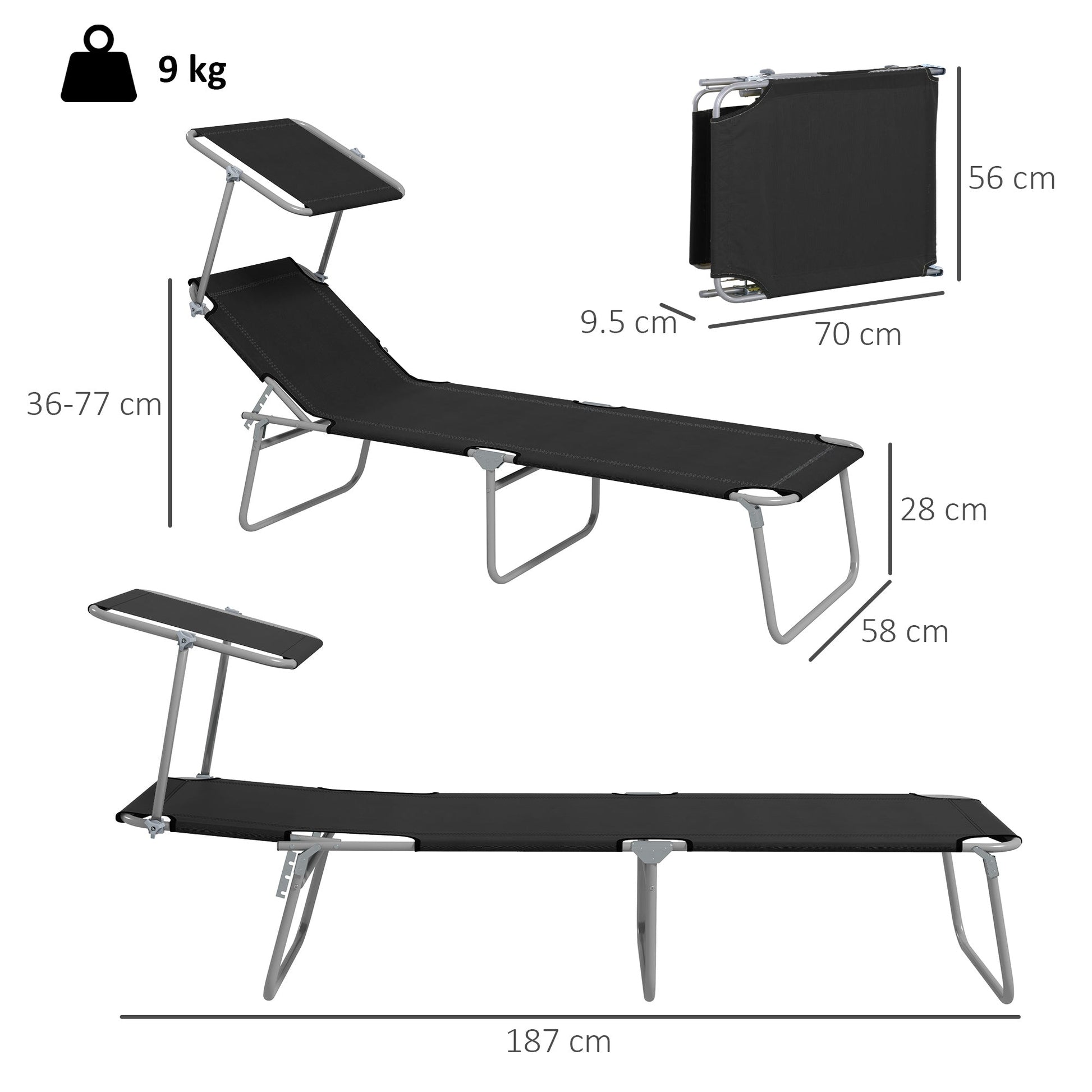Outsunny Foldable Sun Lounger Set of 2 with Sun Shade & Adjustable Backrest - Black