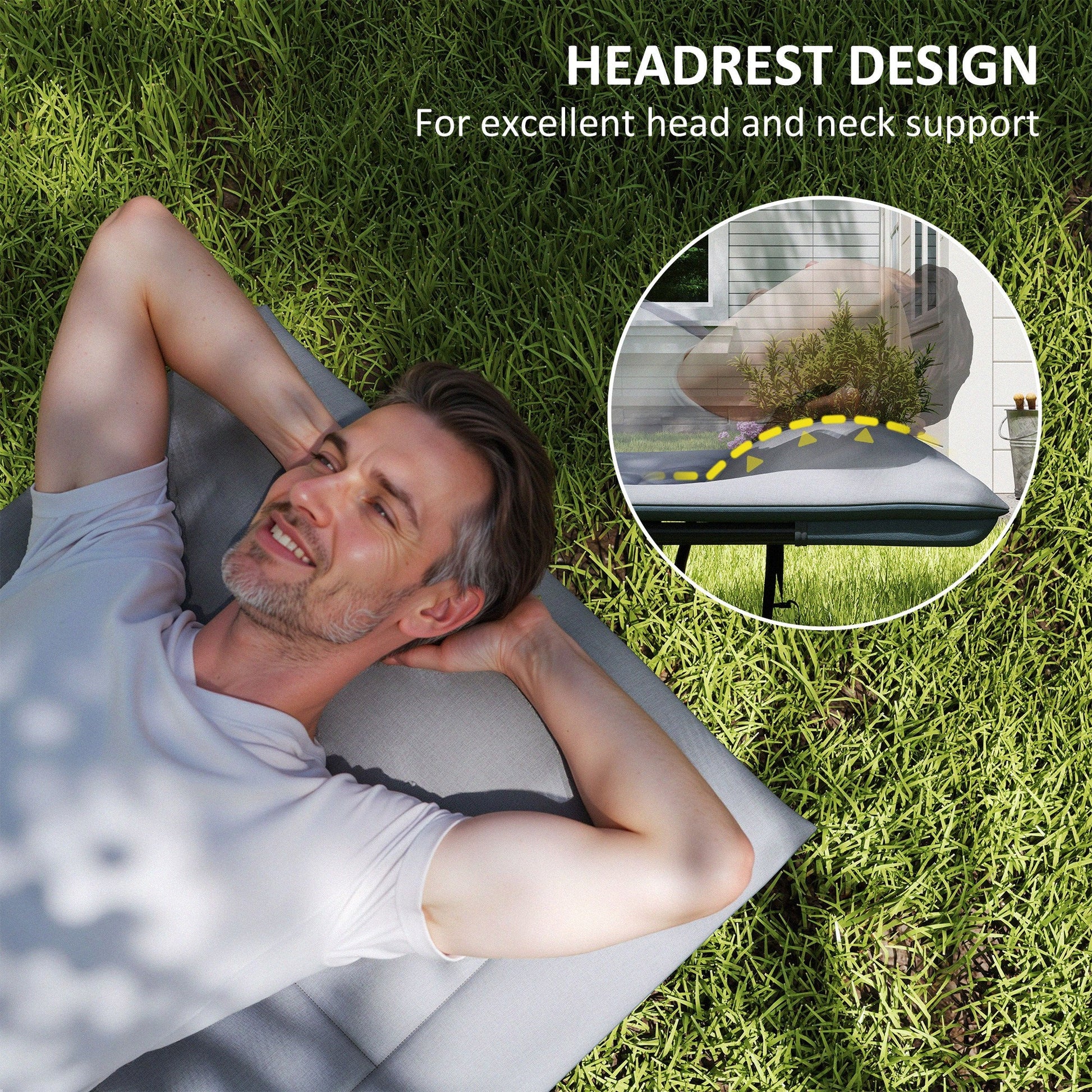 Outsunny Folding Camping Bed for Adults with Cushion, Heavy Duty Portable Travel Camping Cot with Headrest, Side Pocket and Non-Slip Foot Pads for Outdoor Beach Travel Office, Grey