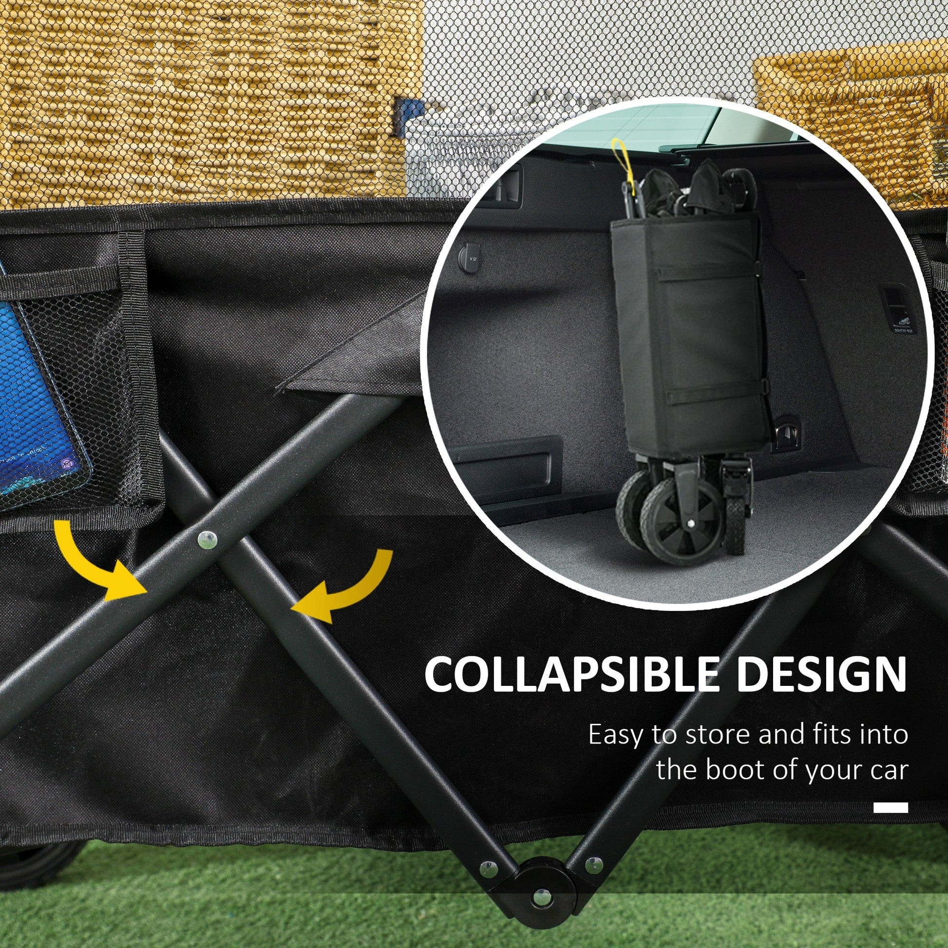 Outsunny Folding Garden Trolley, 180L Wagon Cart with Extendable Side Walls, for Beach, Camping, Festival, Black