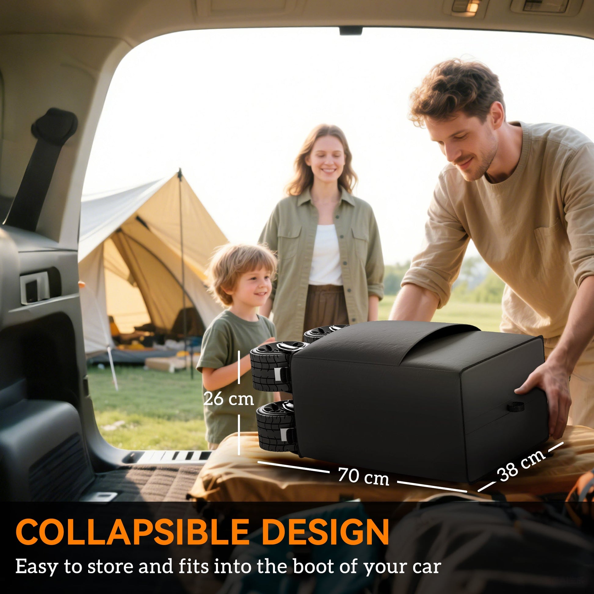 - Folded Dimensions: 70L x 38W x 26Hcm