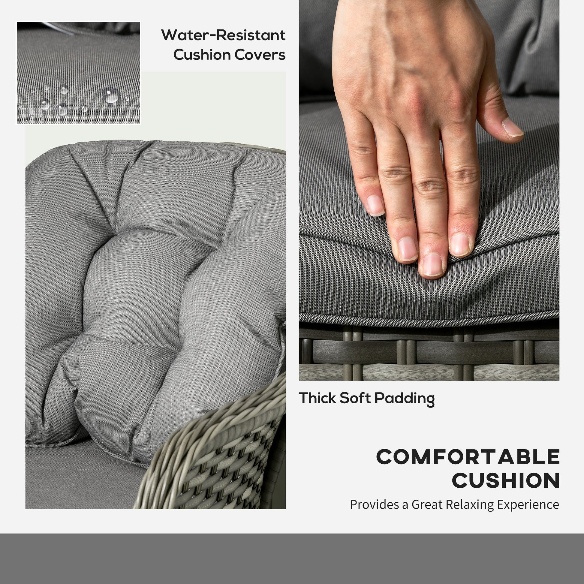 Bring the whole family together outdoors this summer, thanks to this Outsunny rattan sofa set. It comes with two chairs, a double sofa and table. The frames of the garden furniture sets are made from tough and durable aluminium, wrapped in weather and fade resistant rattan for double the protection and durability. Finished with seat and back cushions on each piece - you'll find it hard to get out once settled in!