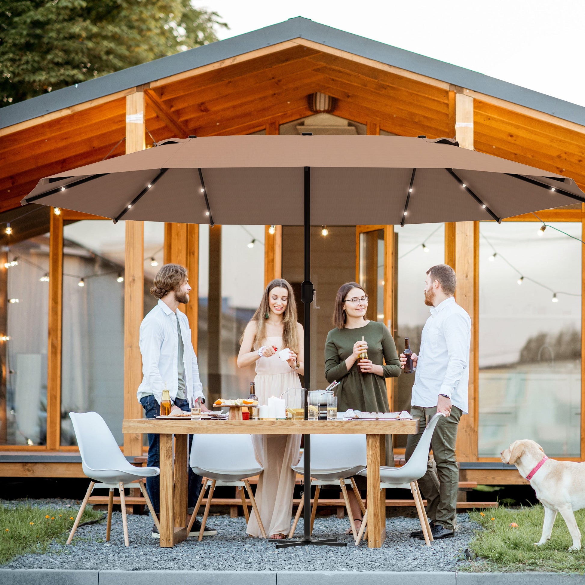 Outsunny Garden Parasol 4.4m Double-Sided Sun Umbrella Patio Parasol LED Solar Lights Khaki