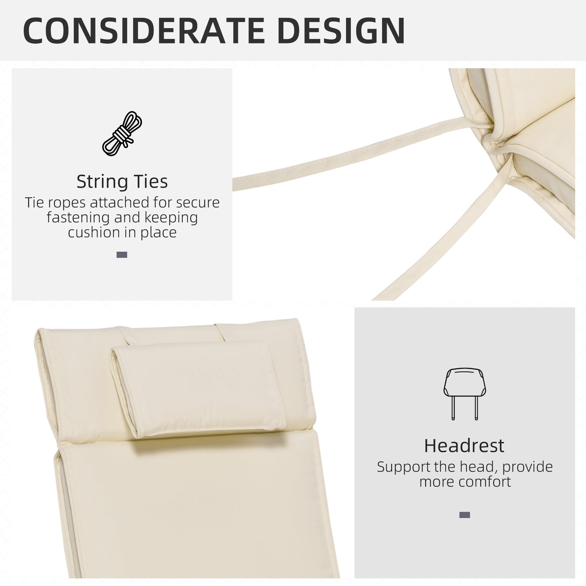 Outsunny Garden Sun Lounger Cushion Replacement Soft Sunbed Reclining Chair Relaxer Pad with Pillow, Cushion ONLY - Cream White