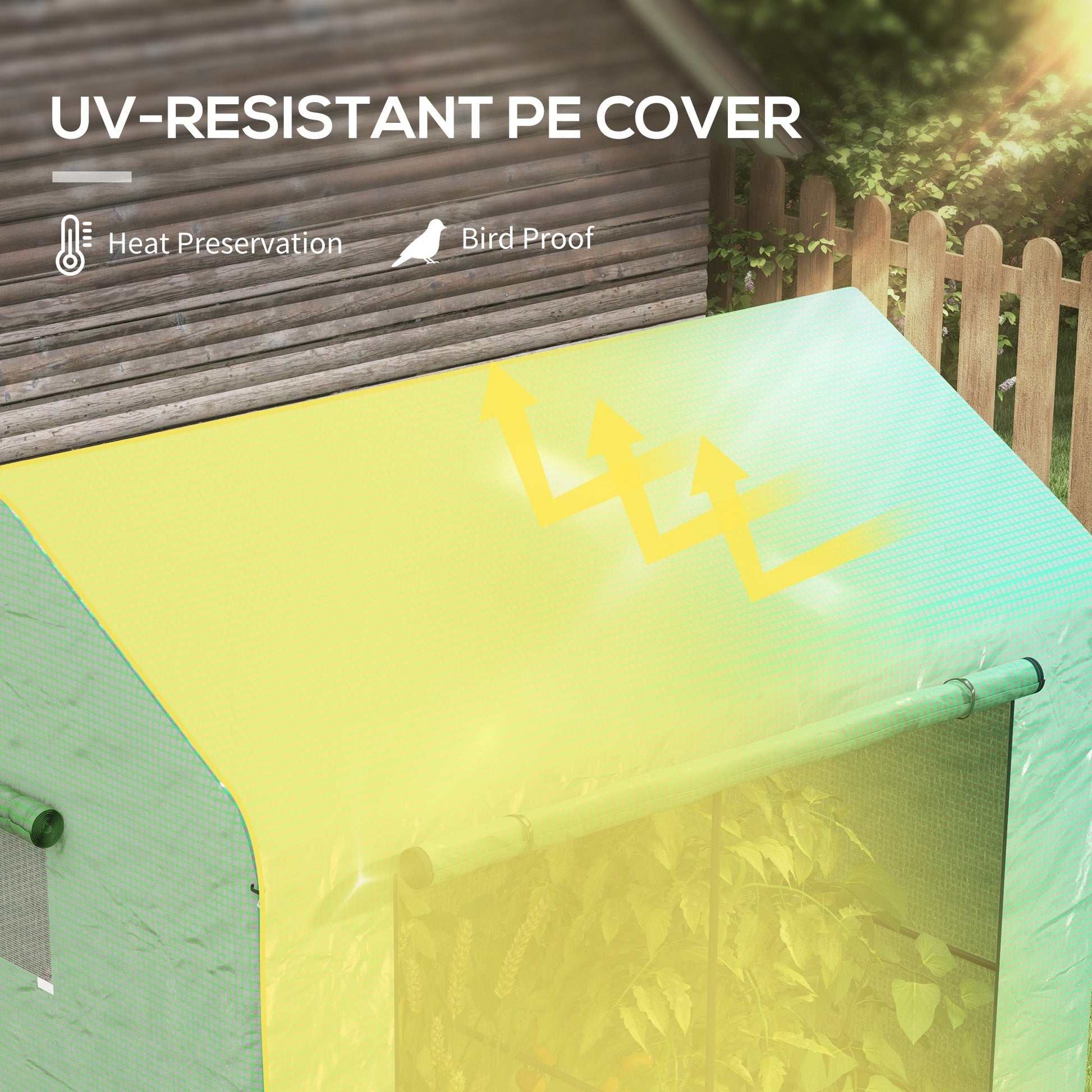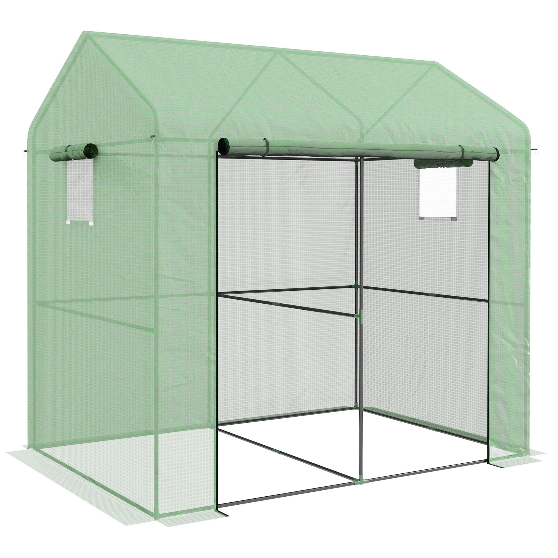 Outsunny Greenhouse, Walk-in Garden Grow House with Roll-up Door and Mesh Windows, 200 x 140 x 200cm, Green