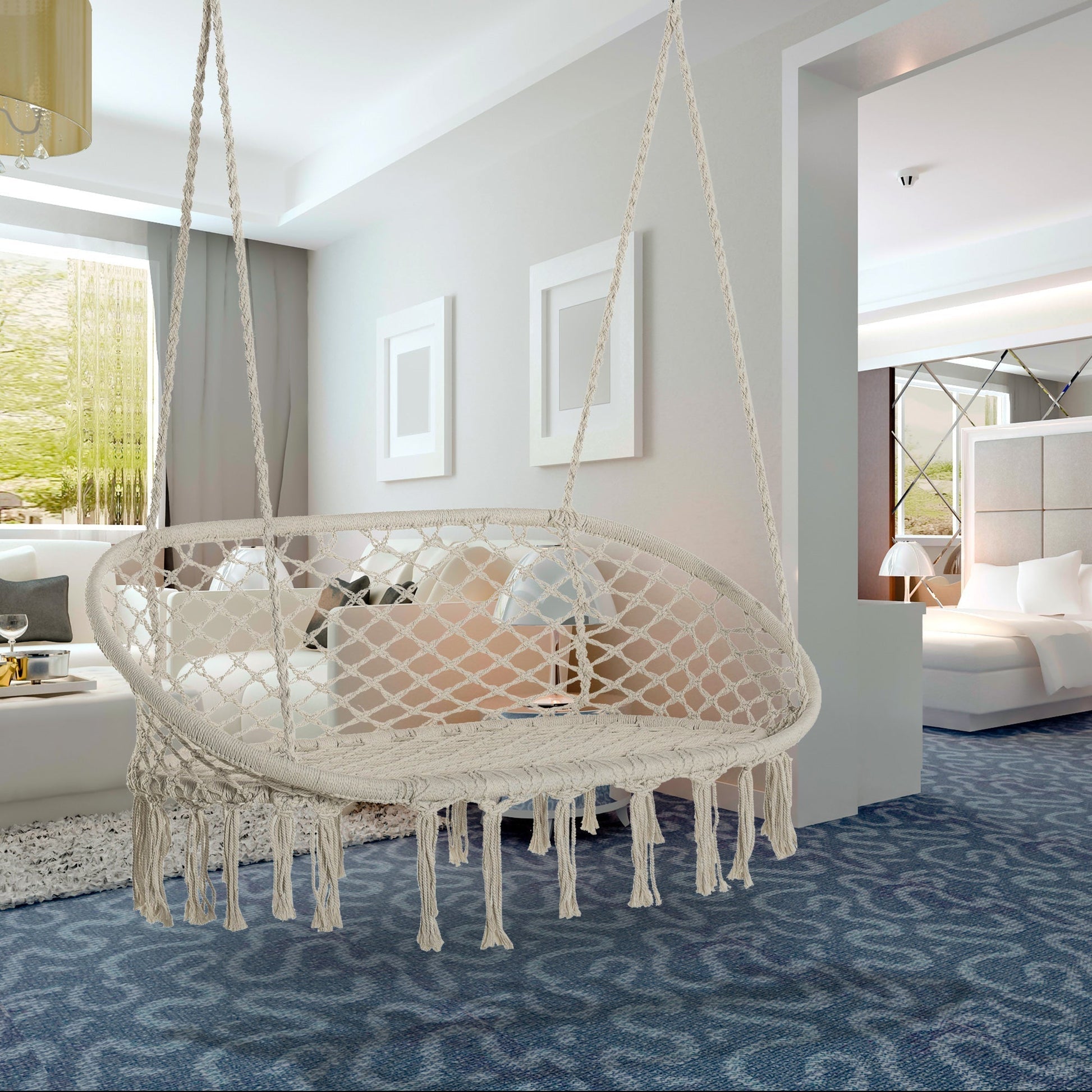 Outsunny Hanging Hammock Chair Cotton Rope Porch Swing with Metal Frame, Large Macrame Seat for Patio, Garden, Bedroom, Living Room, Cream White