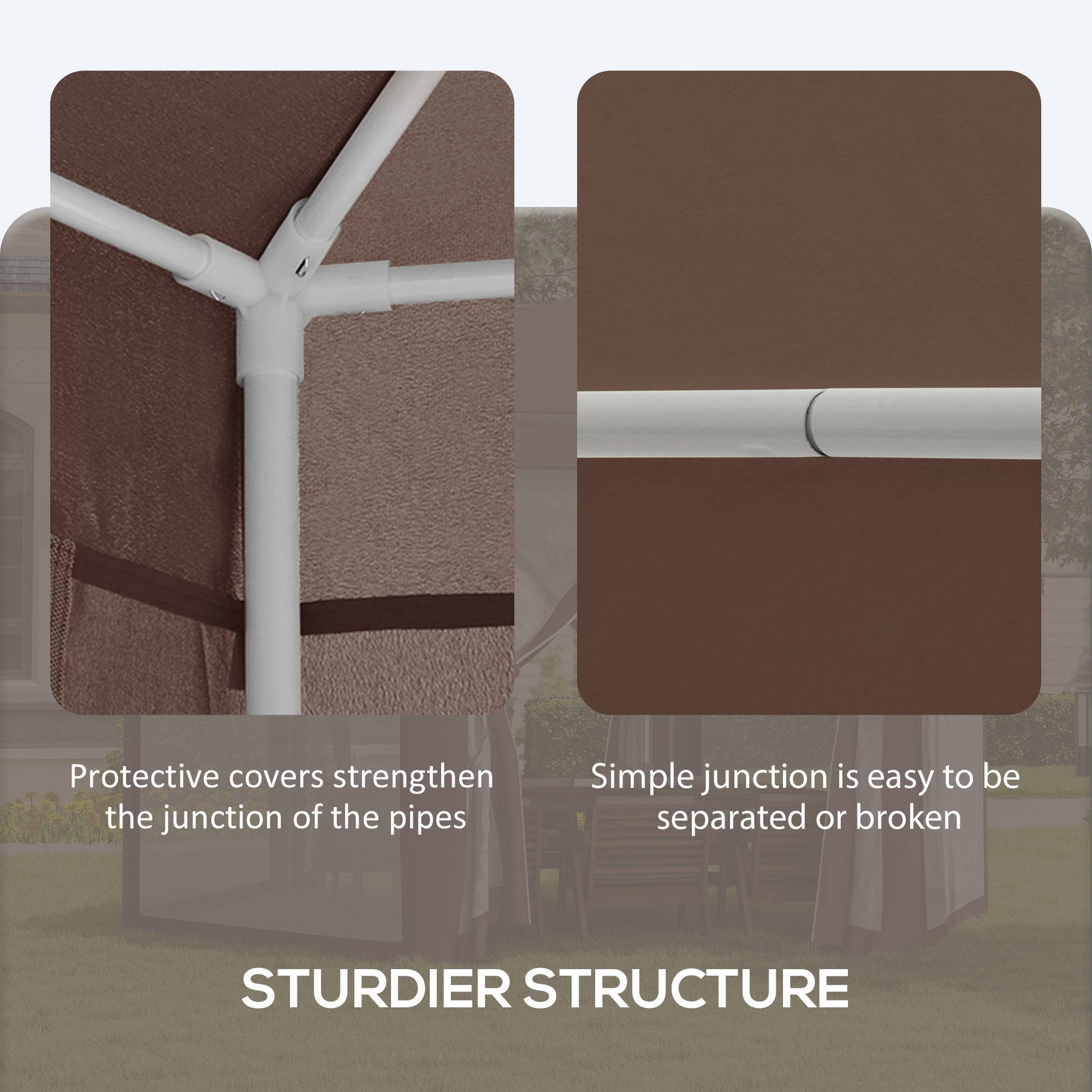 Outsunny Hexagonal Garden Gazebo Patio Party Outdoor Canopy Tent Sun Shelter with Mosquito Netting and Zipped Door, Brown