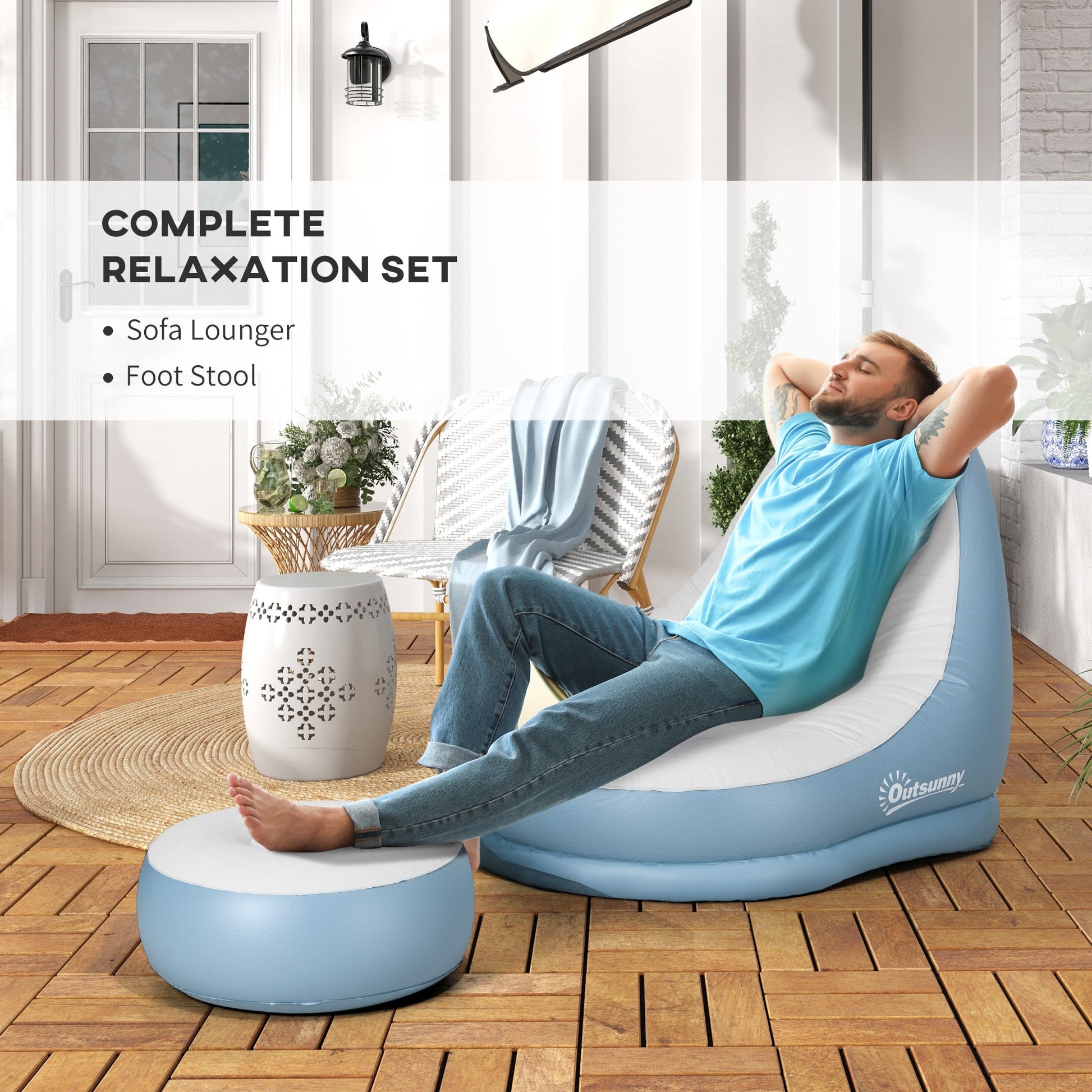 Outsunny Inflatable Tub Chair and Footstool - Blue/White