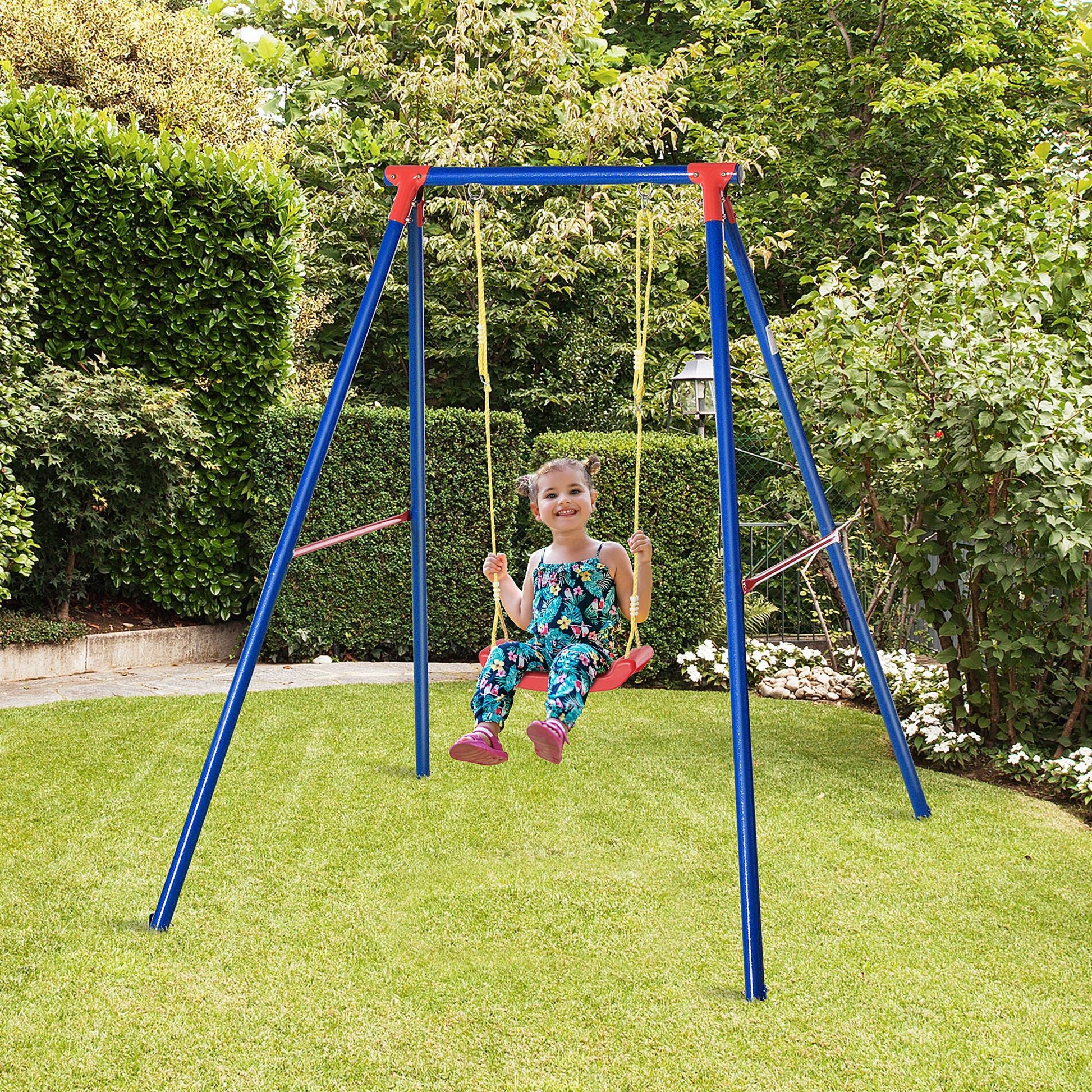 Outsunny Kids Swing Set Toddler Swing Adjustable Rope Heavy Duty A-Frame Stand Outdoor Playset for 3-8 Years Old Blue