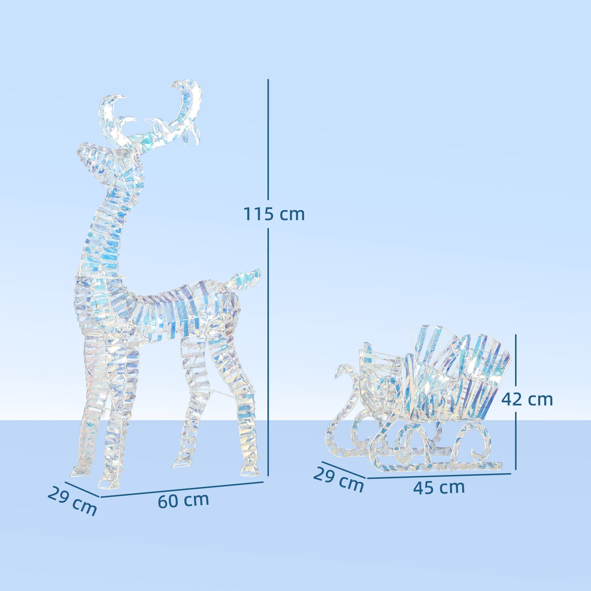 Outsunny Lighted Christmas Reindeer with Sleigh, Outdoor Yard Reindeer with 170 Warm White LED Lights, Holiday Decor with Stakes, Waterproof, Silver