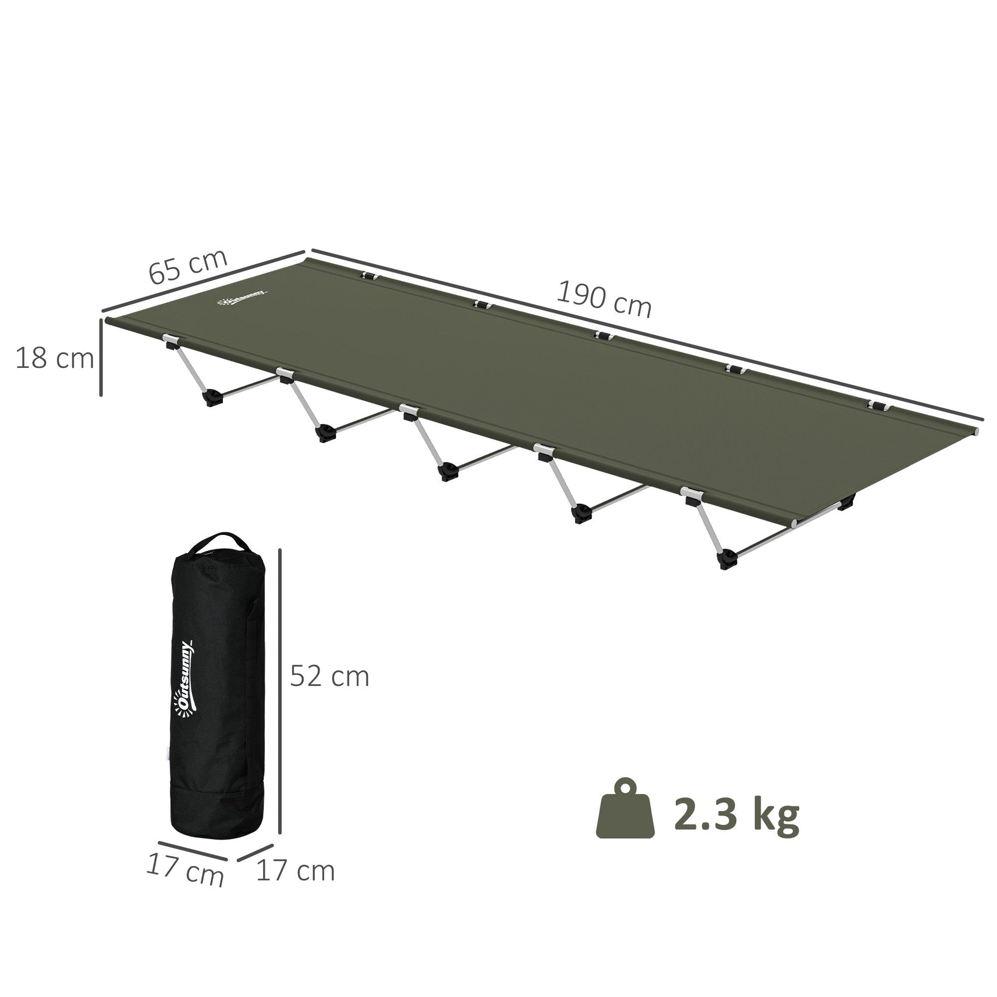 Outsunny Lightweight Camping Bed, Aluminium Portable Camp Cot w/ Strong Support 150kg and Carry Bag for Camping, Dark Green