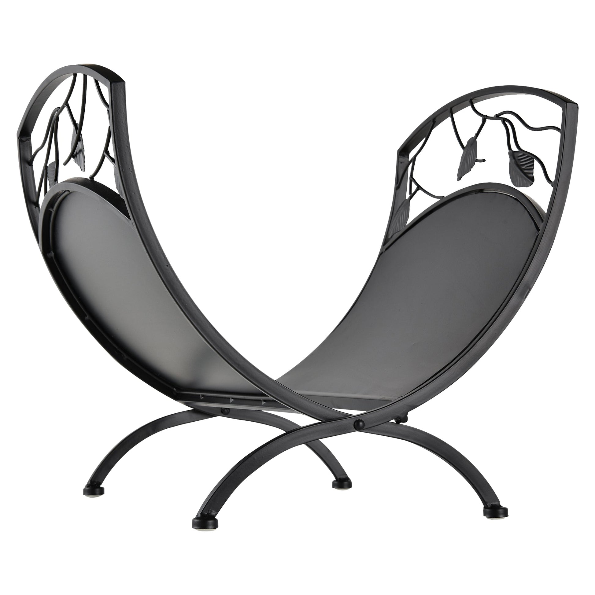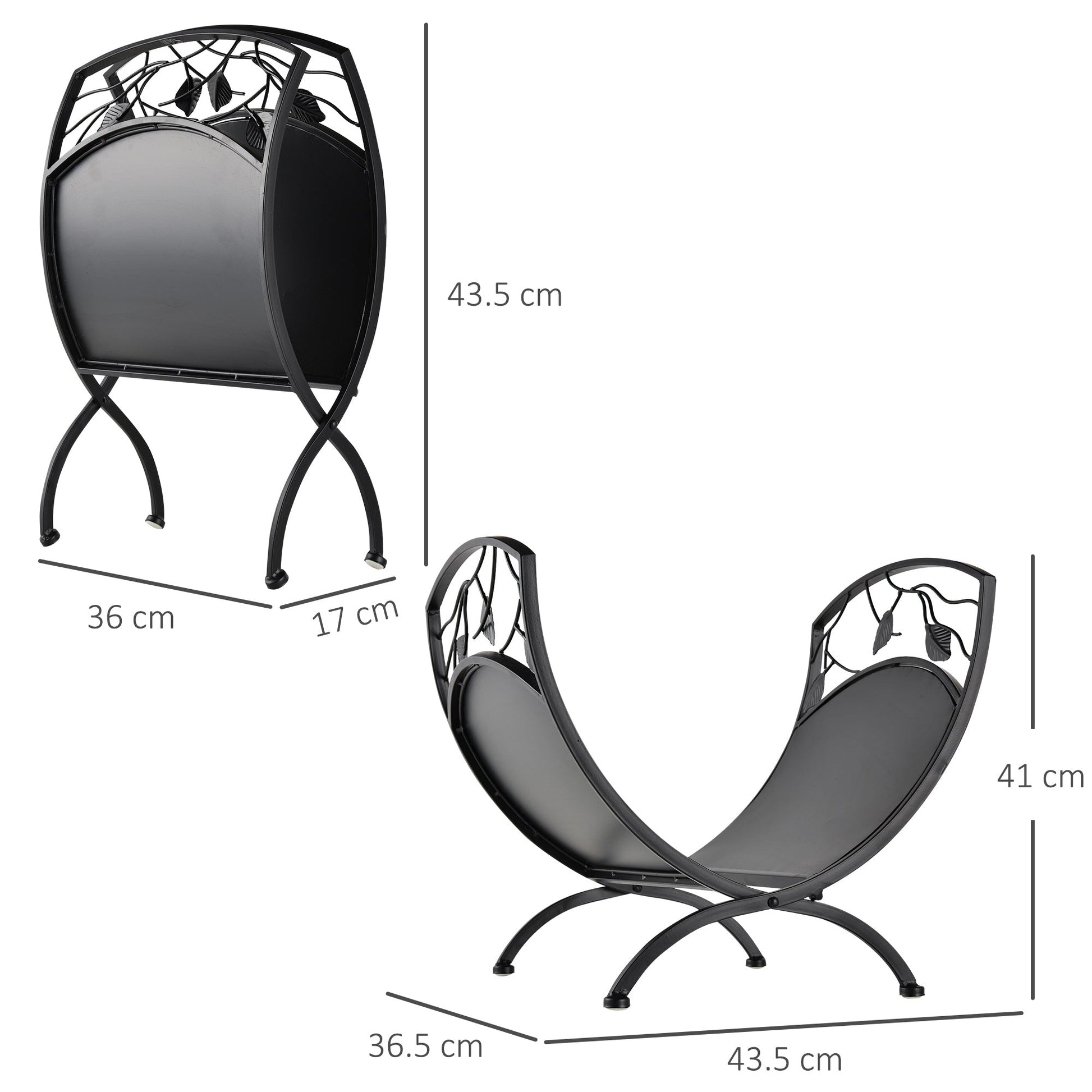Outsunny Metal Arced Firewood Log Holder Indoor Outdoor Folding Firewood Rack Fireplace Wood Storage Shelf w/ Leaf Pattern Design, Black, 43.5W x 36.5D x 41H cm
