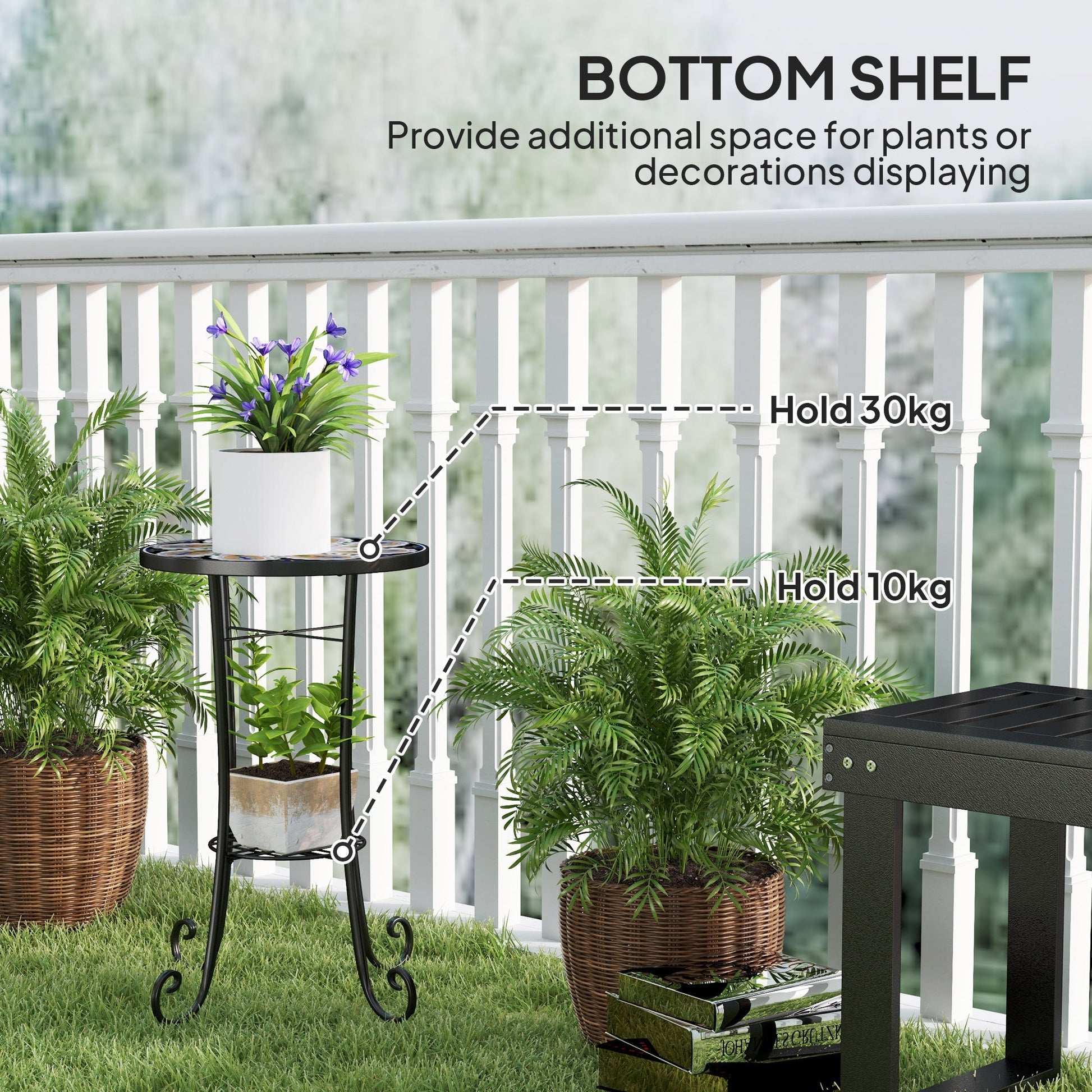 - Bottom shelf supports up to 10 kg for decorations or plants