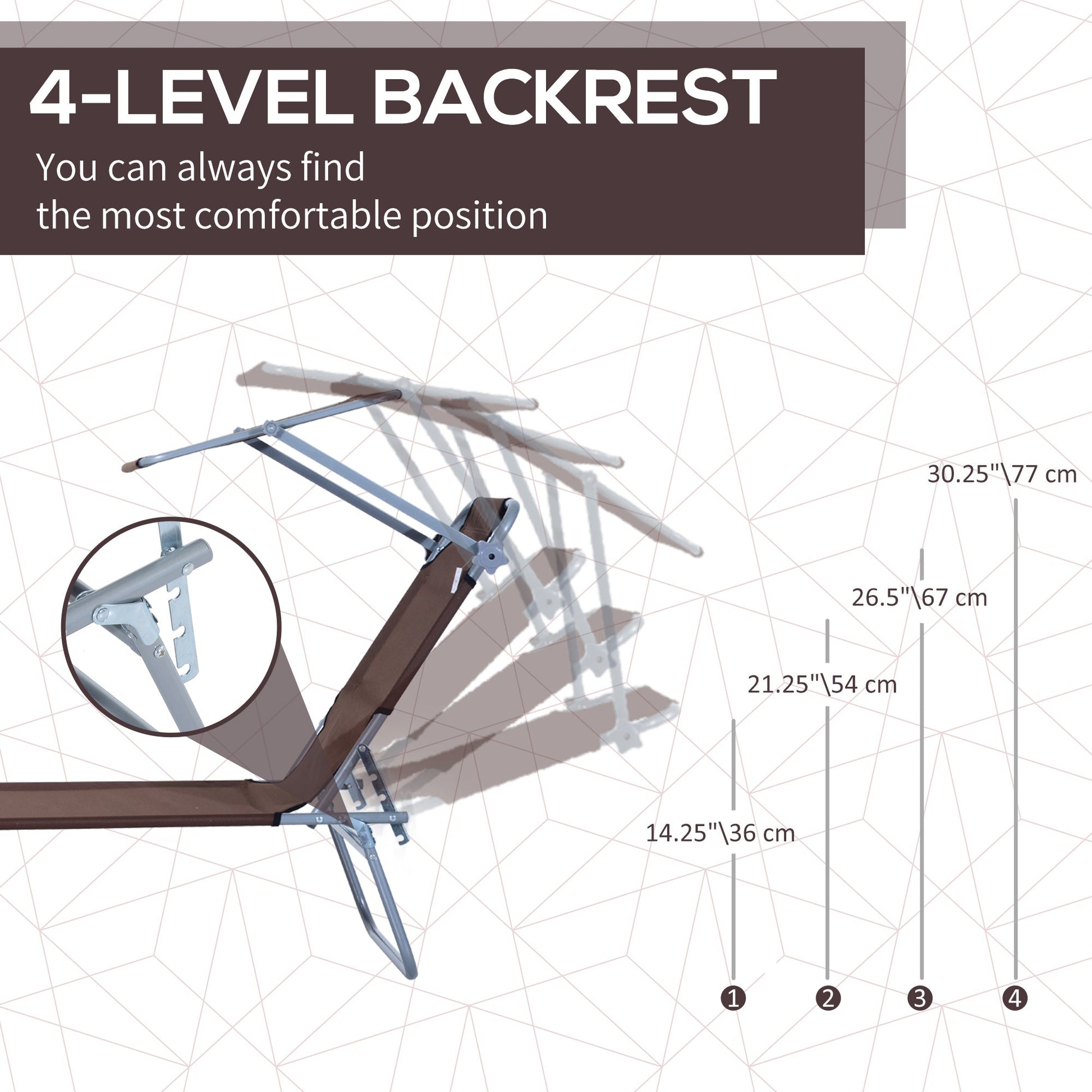 Outsunny Outdoor Foldable Sun Lounger, 4 Level Adjustable Backrest Reclining Sun Lounger Chair with Angle Adjust Sun Shade Awning for Beach, Garden, Patio, Brown