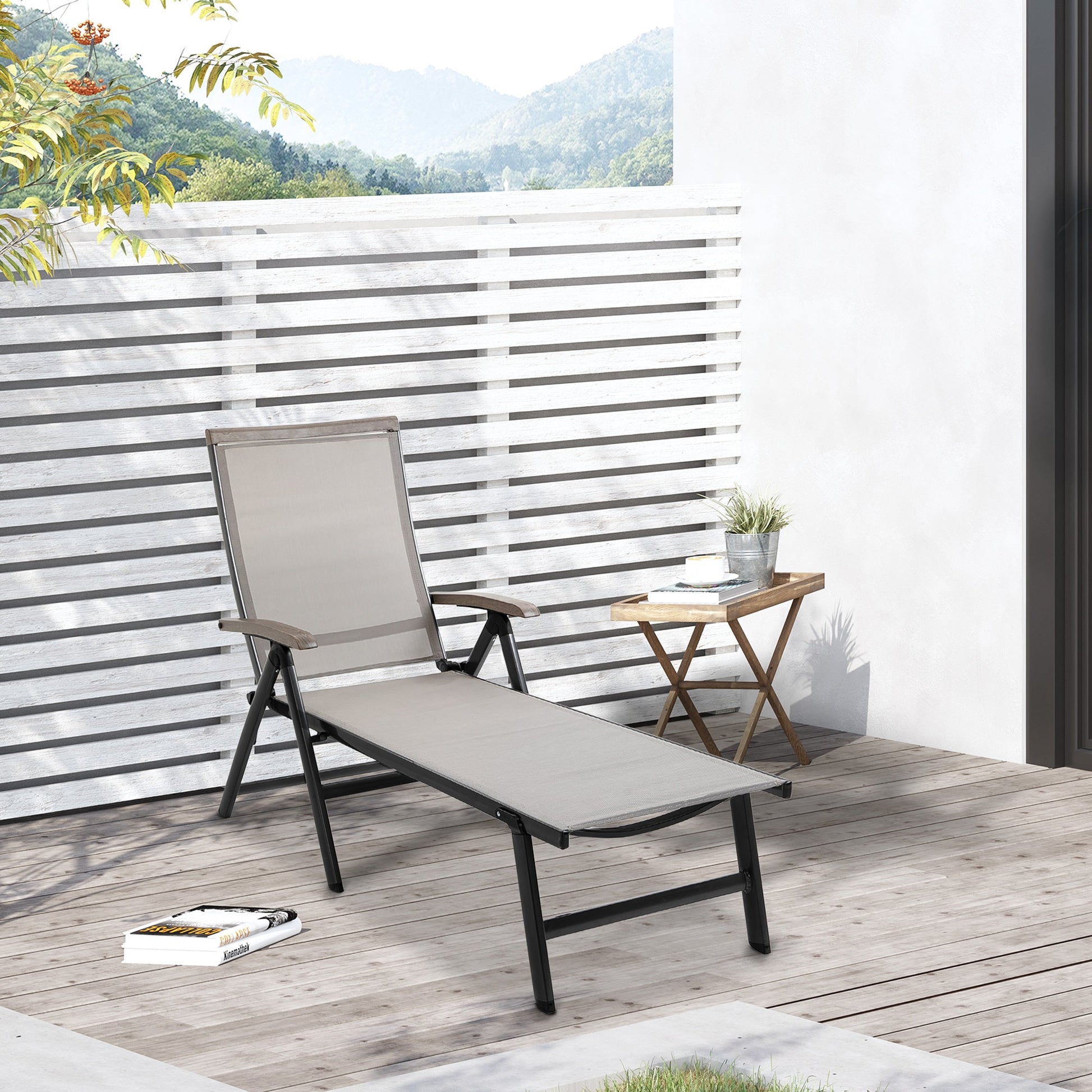 This reclining sun lounger from Outsunny is perfect for relaxing in the sun for hours on end. The breathable mesh fabric on the seat and back holds you comfortably, with high back and armrests for support. Adjustable to five positions, you can change what position you lay back. Folding design make the garden sun lounger is easy to carry with you and store.