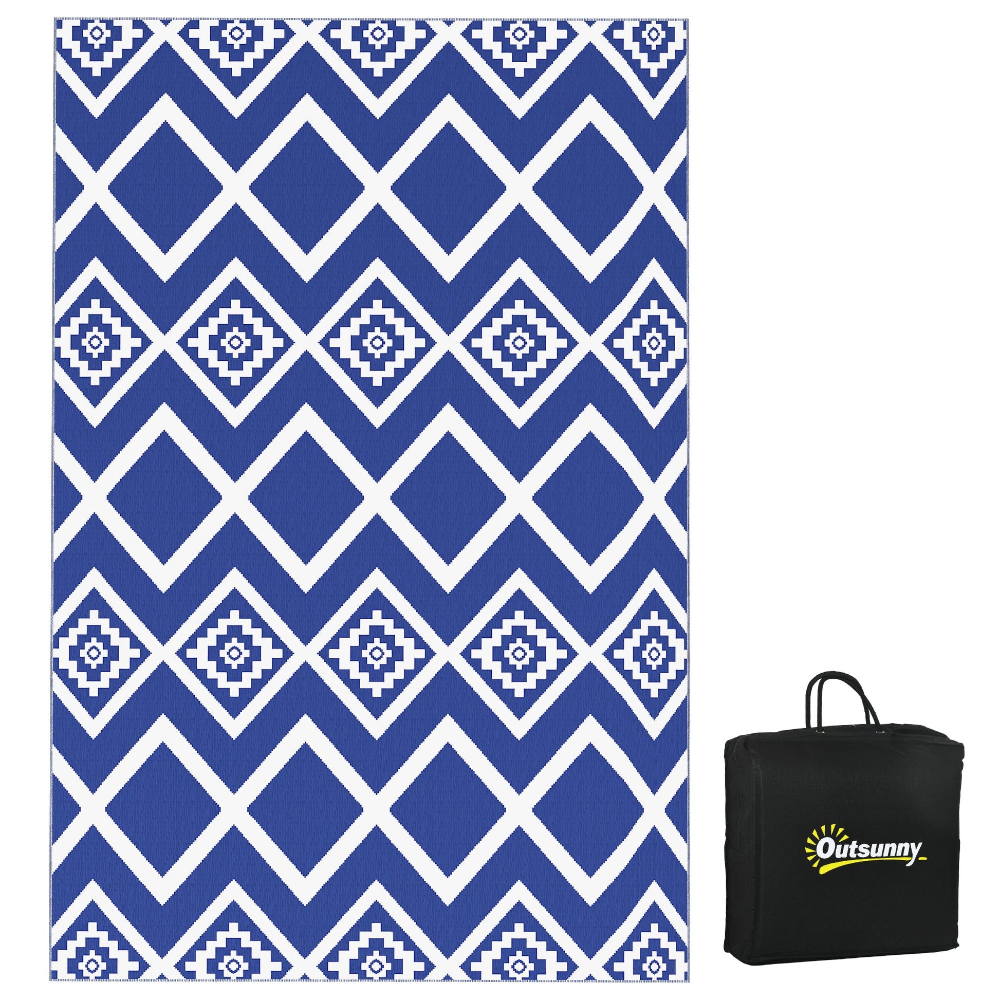 Outsunny Plastic Straw Reversible RV Outdoor Rug with Carry Bag, 182 x 274cm, Blue and White