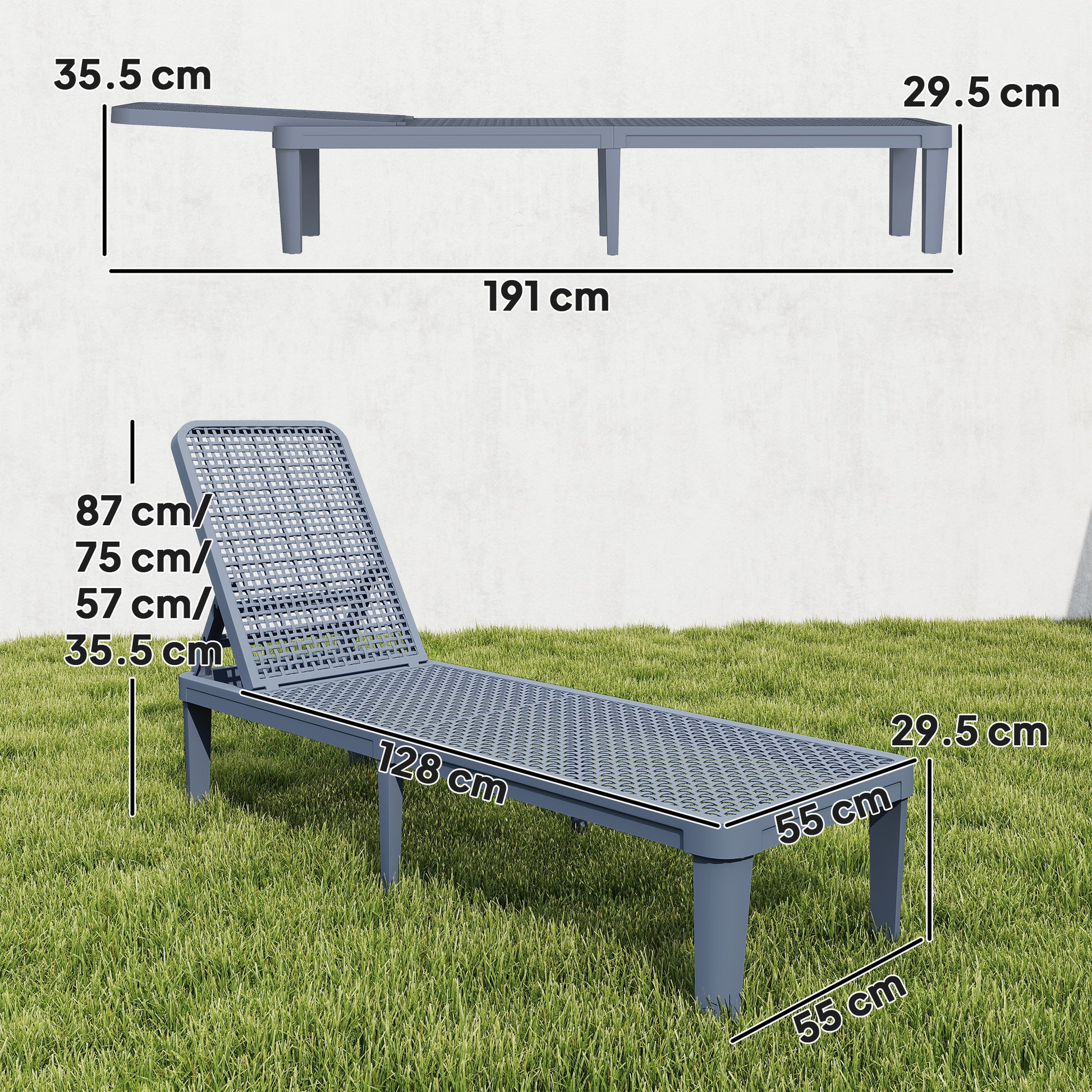 Outsunny Plastic Sun Lounger, 4-Position Adjustable Reclining Garden Lounger Sunbed for Patio, Beach, Terrace, Dark Grey