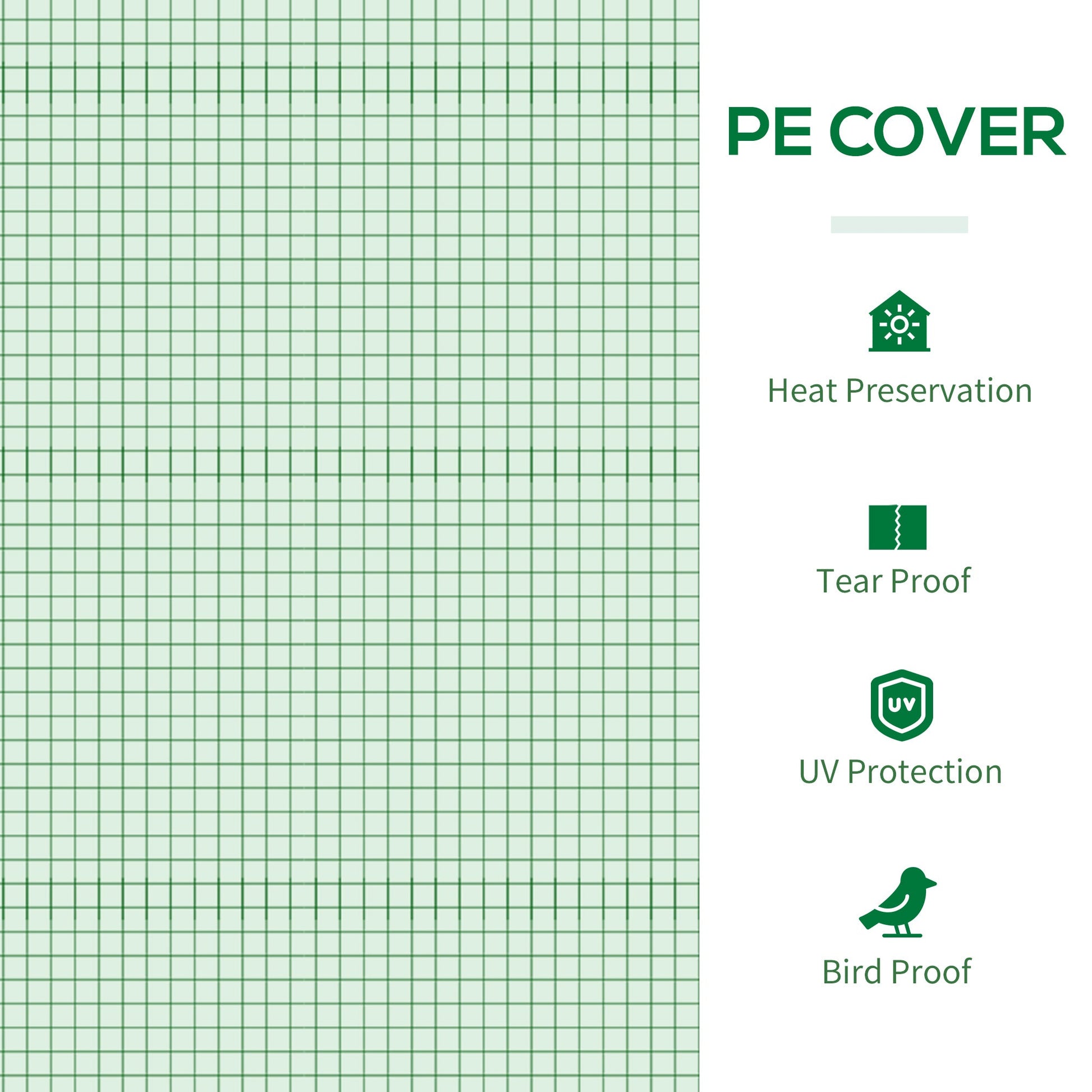 This Outsunny 90 x 240cm garden polytunnel is a compact and convenient design, so whatever the space, you can grow vegetables and plants. The steel frame ensures a strong core, fitted with a plastic cover to protect it from weather and outside elements. It features a large and wide top window to access and allow air inside easily, with two small side windows for extra air flow. The middle mesh panel in the windows allows air to flow through while helping prevent unwanted guests entering.
