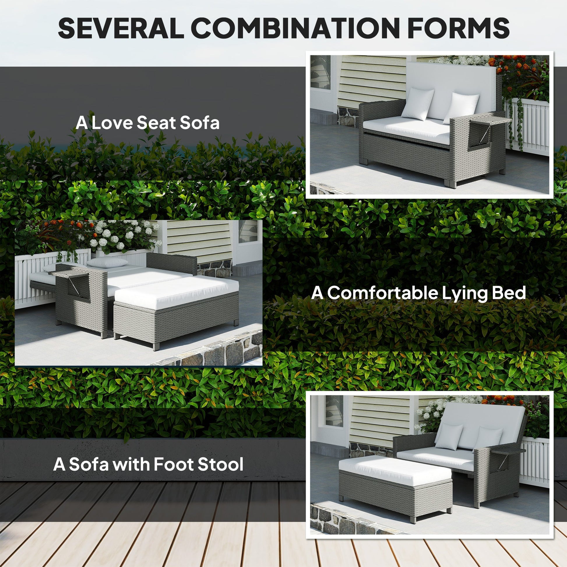 Outsunny Rattan Day Bed, with Footstool - Light Grey