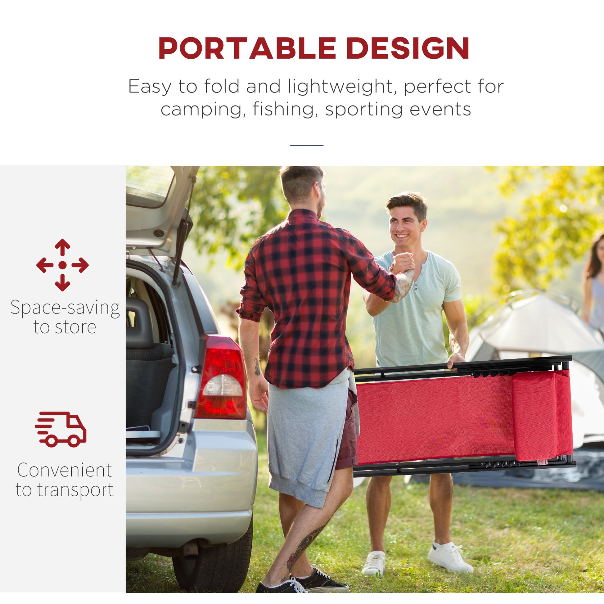 Outsunny Set of 2 Folding Garden Beach Aluminium Frame Deck Chairs Deckchairs Seaside Folding Garden Patio Lounger, Red