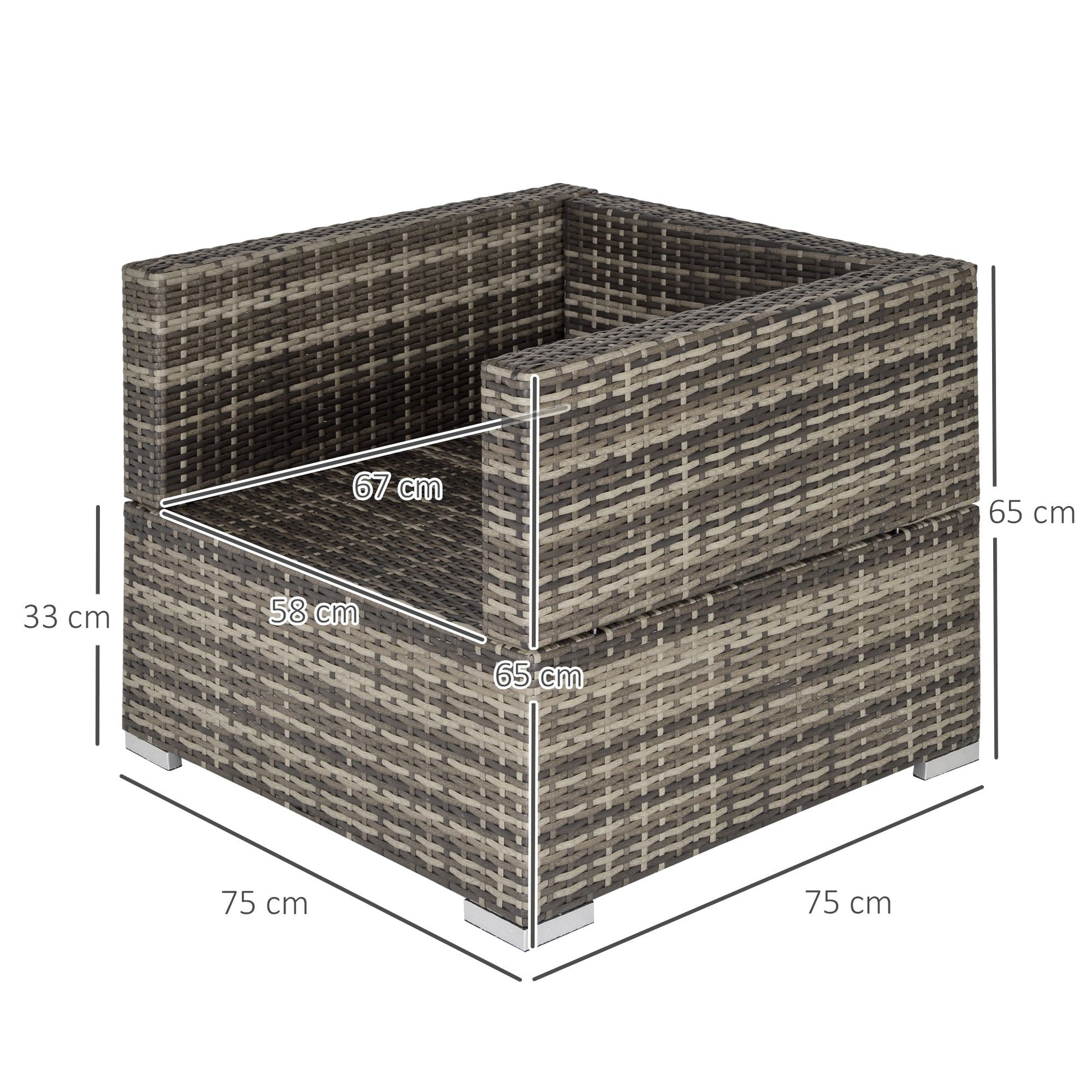 The comfy garden armchair from Outsunny. Made of steel frame to prevent rust and damage outdoors, wrapped in rattan for easy cleaning and is a mainstay in your garden furniture. Come with soft padded and plush cushions, as well as being water-resistant and having washable covers, with a high back and armrests for plenty of support—a great way to sit back and relax in the sun.