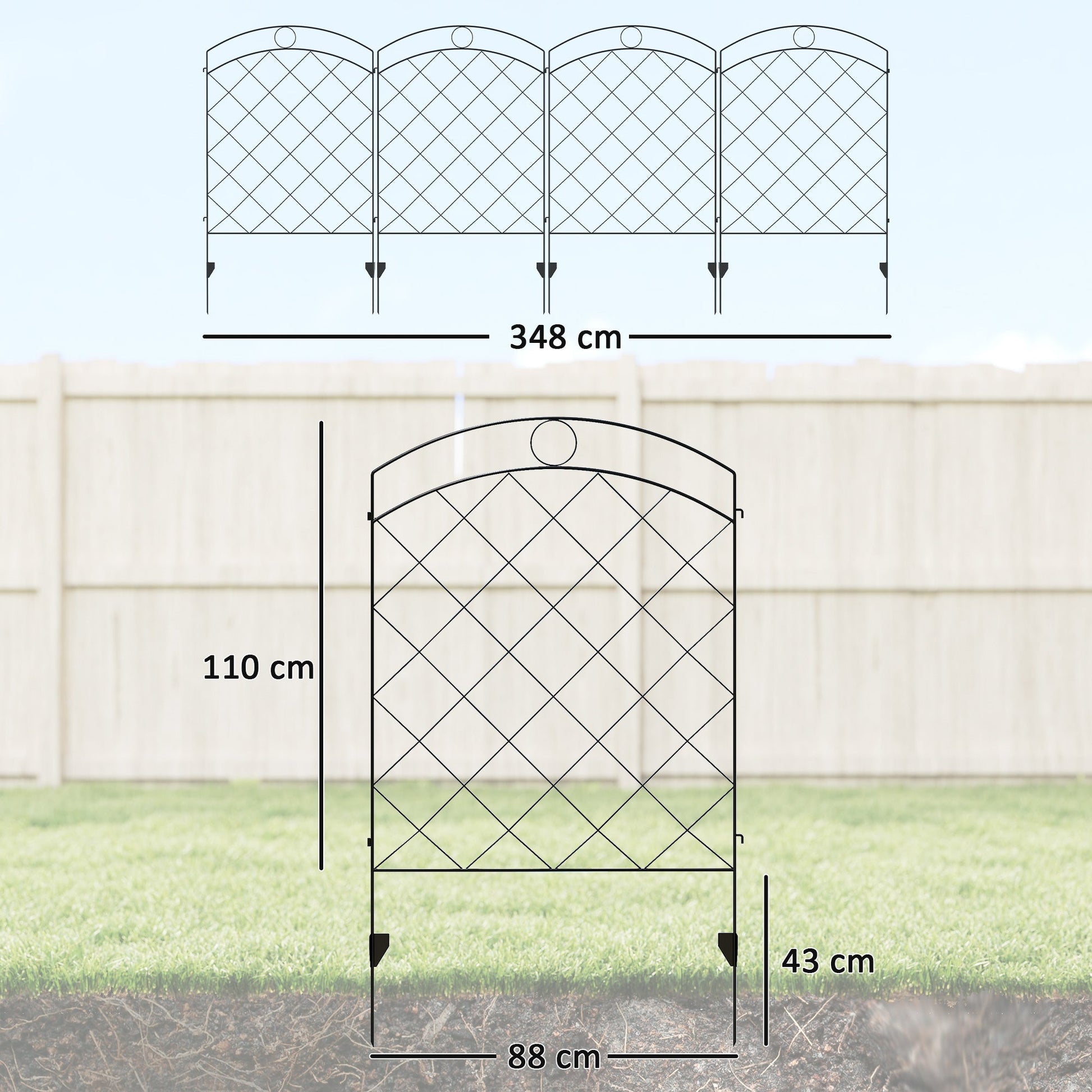 Outsunny Steel Decorative Outdoor Picket Fence Panels Set of 4, Black