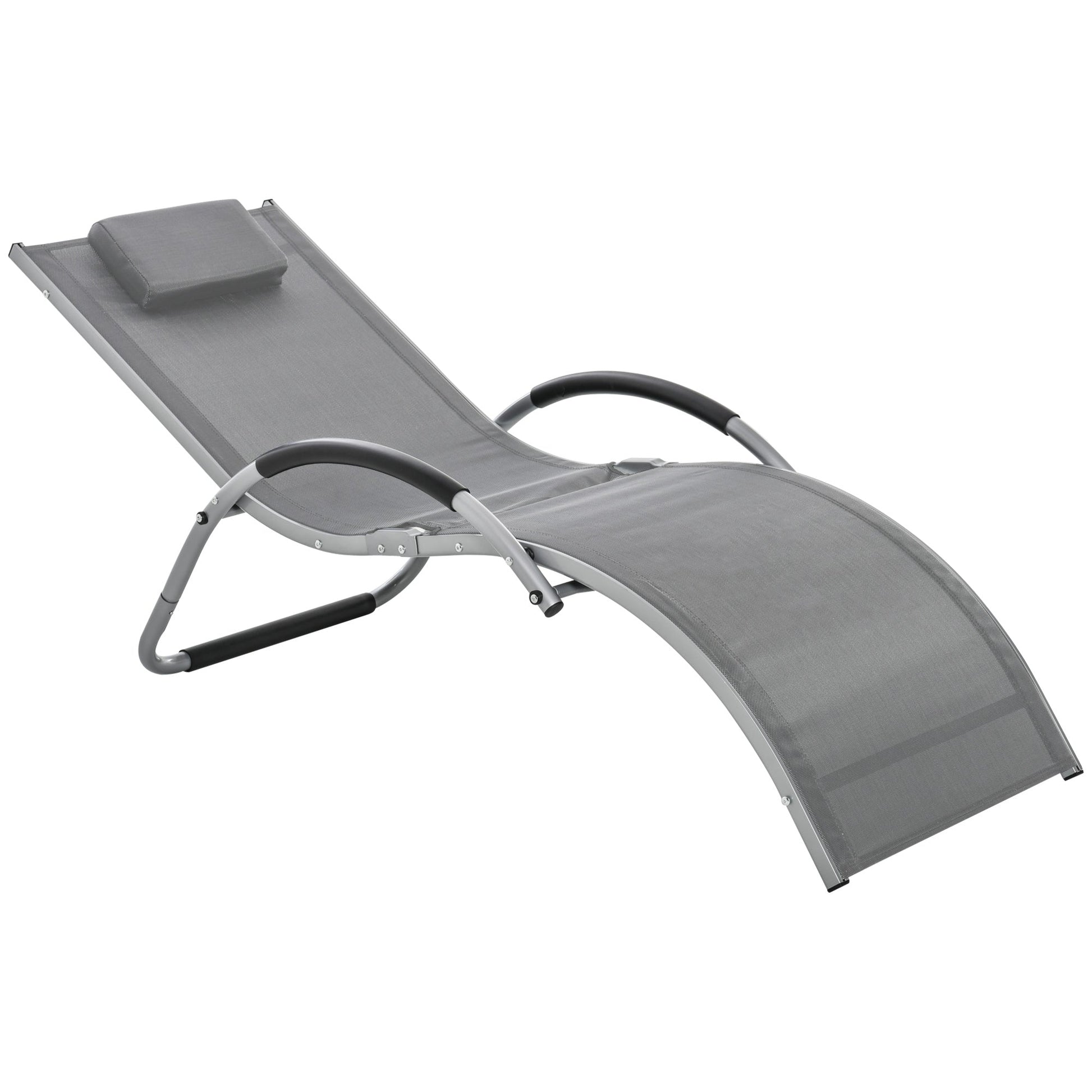 Outdoor lounging just got a lot better. Pair your days outside with this Outsunny lounger for complete relaxation. The frame is made from aluminium to be suitable for everyday use, is crafted into a smooth curved shape that better adapts to your body shape. It's fitted with a breathable mesh fabric seat that holds your body in place, with a removable pillow for extra comfort and support to the head and neck. Finished with foam pads on the armrests and bottom frame part for extra protection.